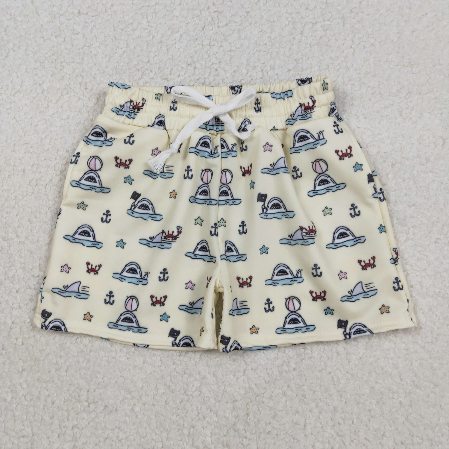 RTS NO MOQ(In Stock) S0584 Crab Starfish Anchor Shark Yellow Swim Trunks