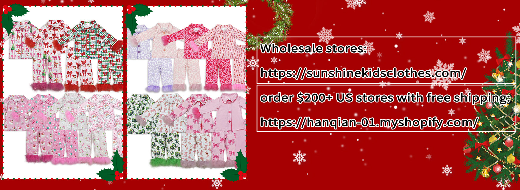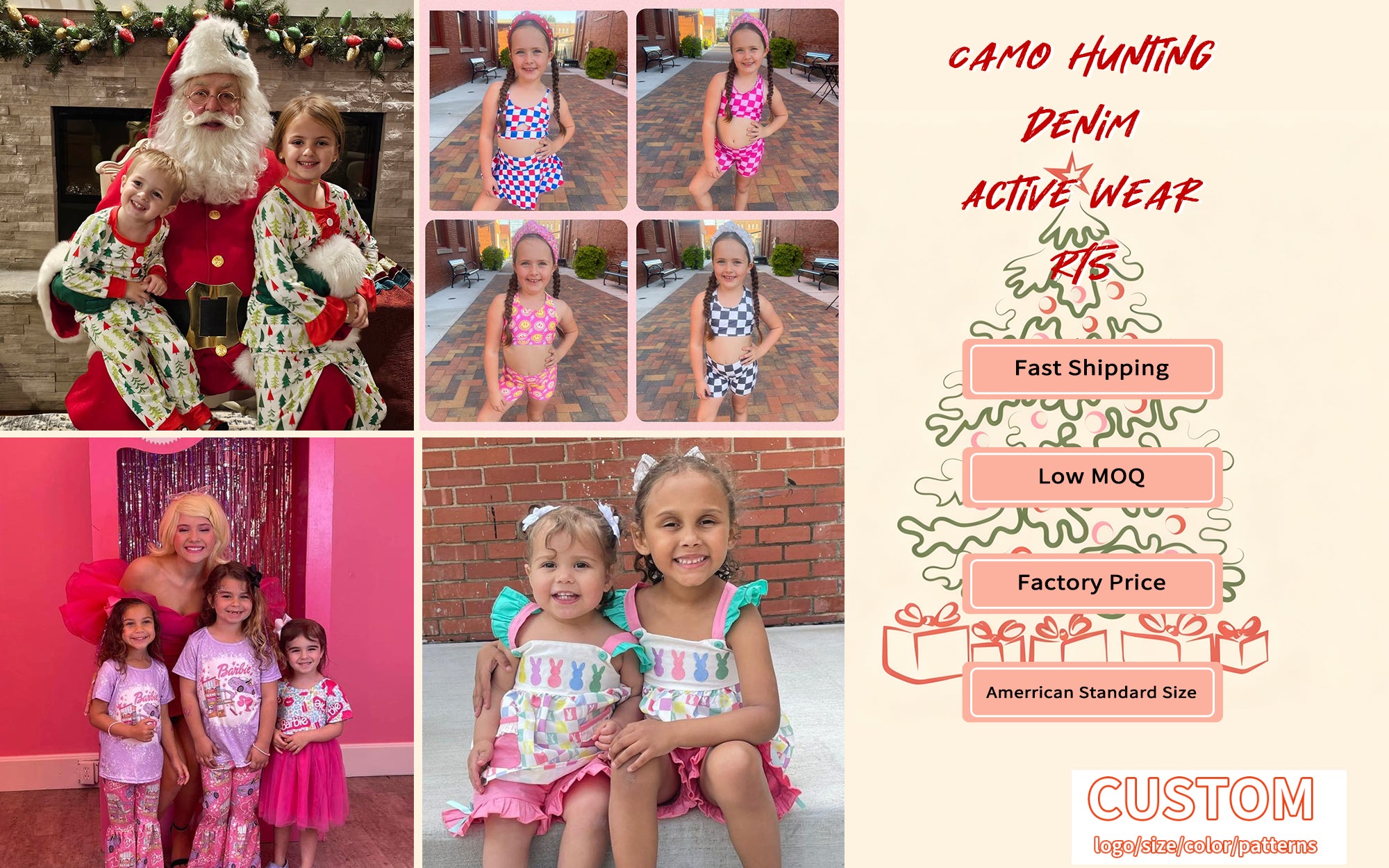RTS NO MOQ GSPO0182 kids clothing Girls Christmas Short Sleeve Top with pants Santa Claus