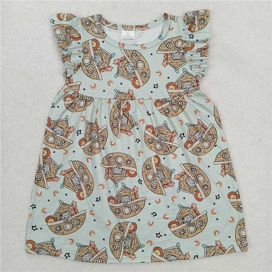 "G6-2-5\]/ Boat, rainbow, stars, light blue flying sleeves dress"