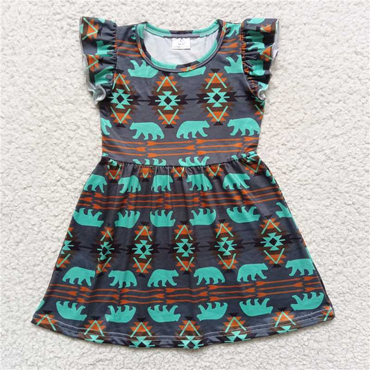 "G6-2-7/]. Cactus horse riding light grey flying sleeve dress"