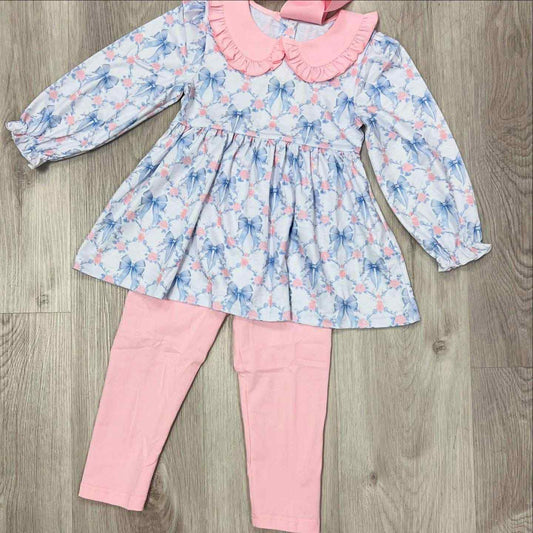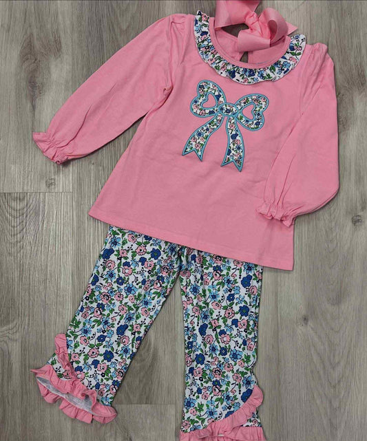 (Pre Order) No moq Pre-order baby girl clothes love bow short sleeve pants sets-2025.12.6