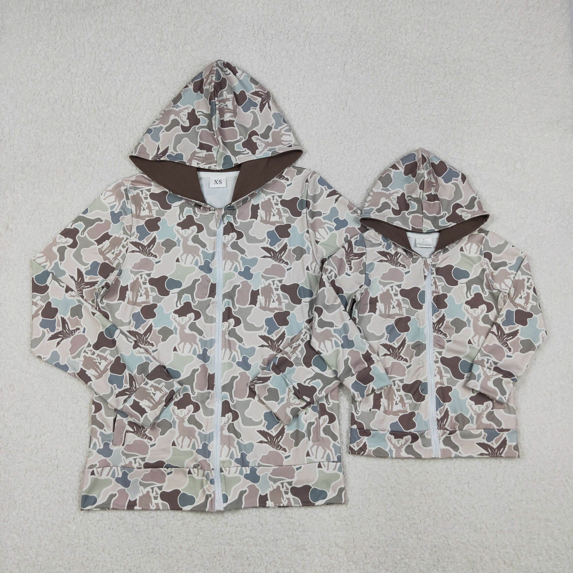 12/18m-7/8t RTS NO MOQ Sibling baby boy clothes and Adult clothes camouflage duck hooded long sleeve tops and adult top