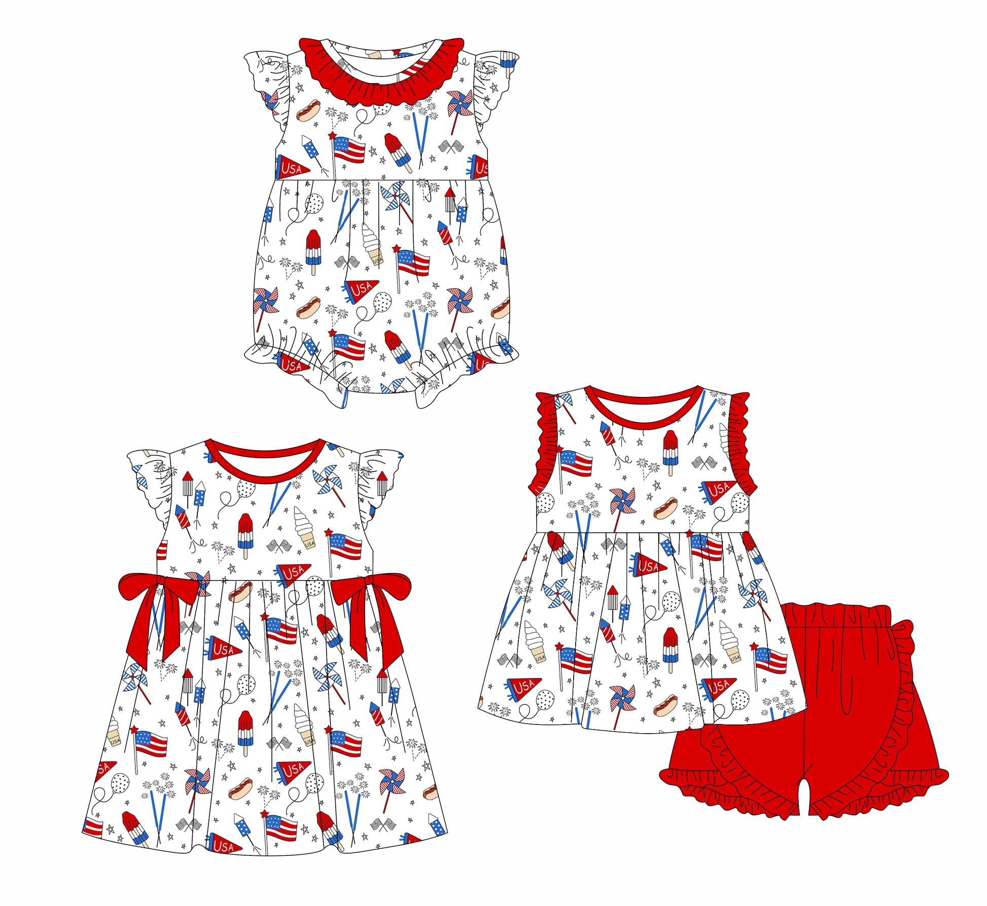 12.30 custom each style moq 5eta 4-6week Sibling Sister 4th of july baby girl short sleeve shorts sets and dress and rompers match family design