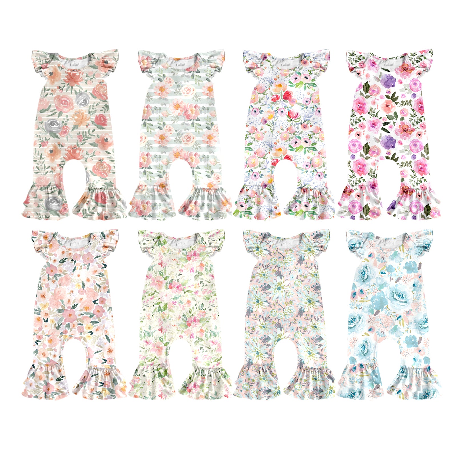 25.11.29 custom each style moq 5 eta 6-8week Sibling Sisters floral baby girl clothes flying sleeve rompers 8 match family design