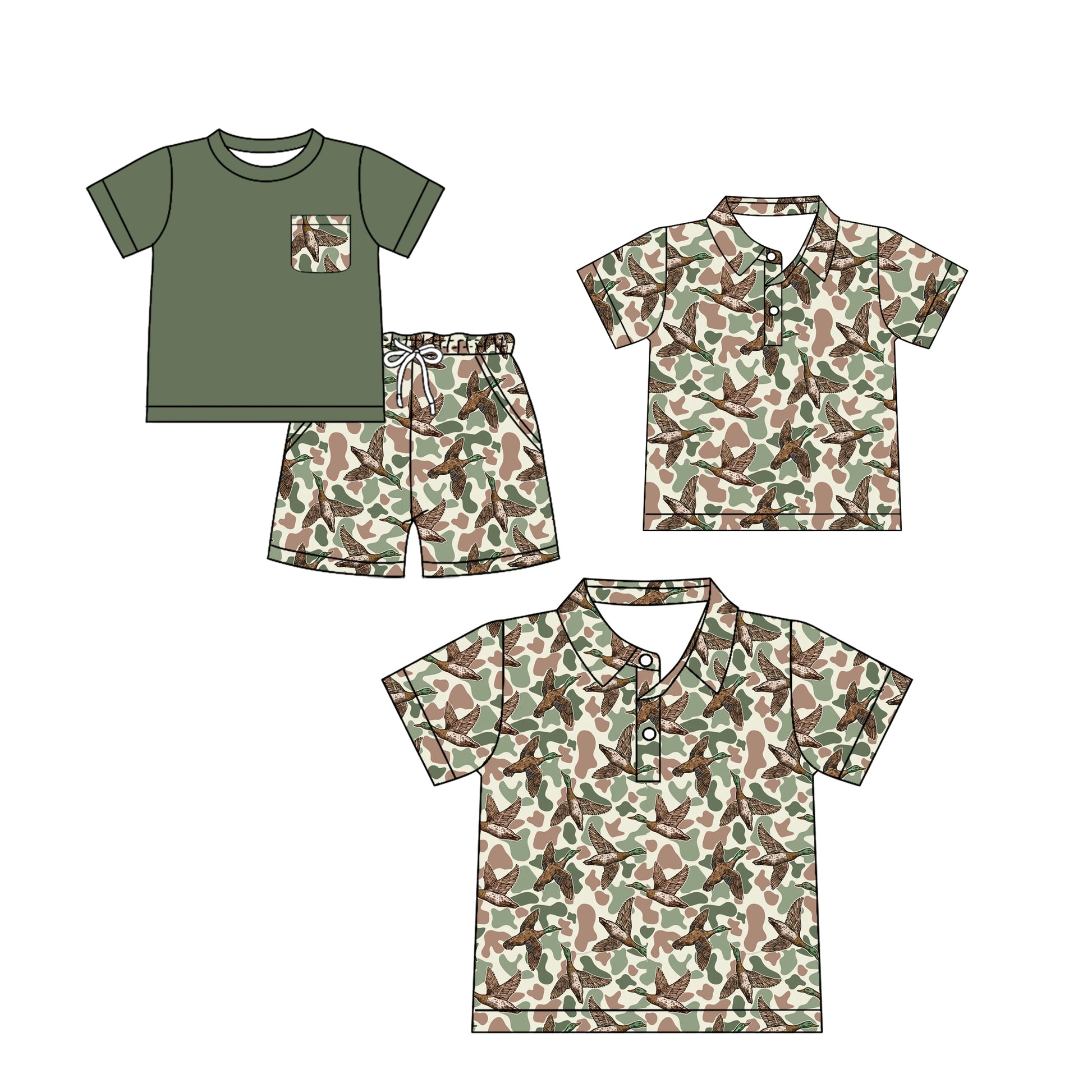 25.12.1 custom each style moq 5 eta 6-8week Sibling Sister camouflage duck short sleeve shorts sets and kids top and adult top match design