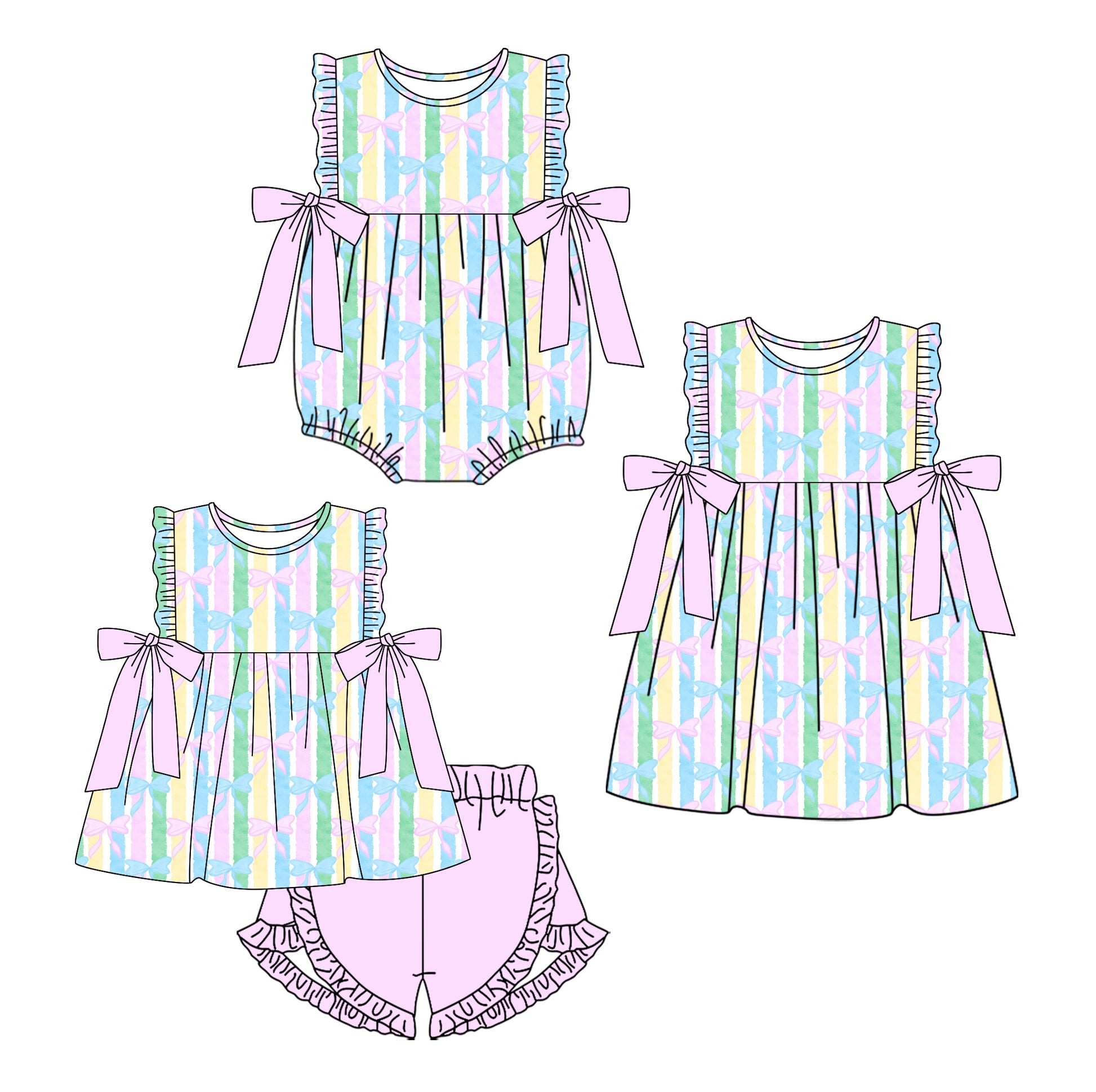 25.12.4 custom each style moq 5 eta 6-8week Sibling Siste bow baby short sleeve shorts sets and romper and dress match design