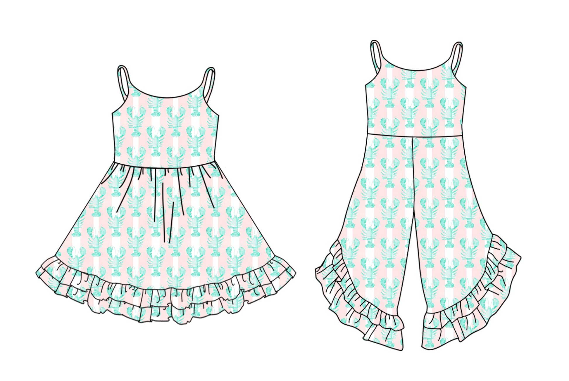 25.12.4 custom each style moq 5 eta 6-8week Sibling Sister crayfish baby girl clothes suspender jumpsuit and dress match design