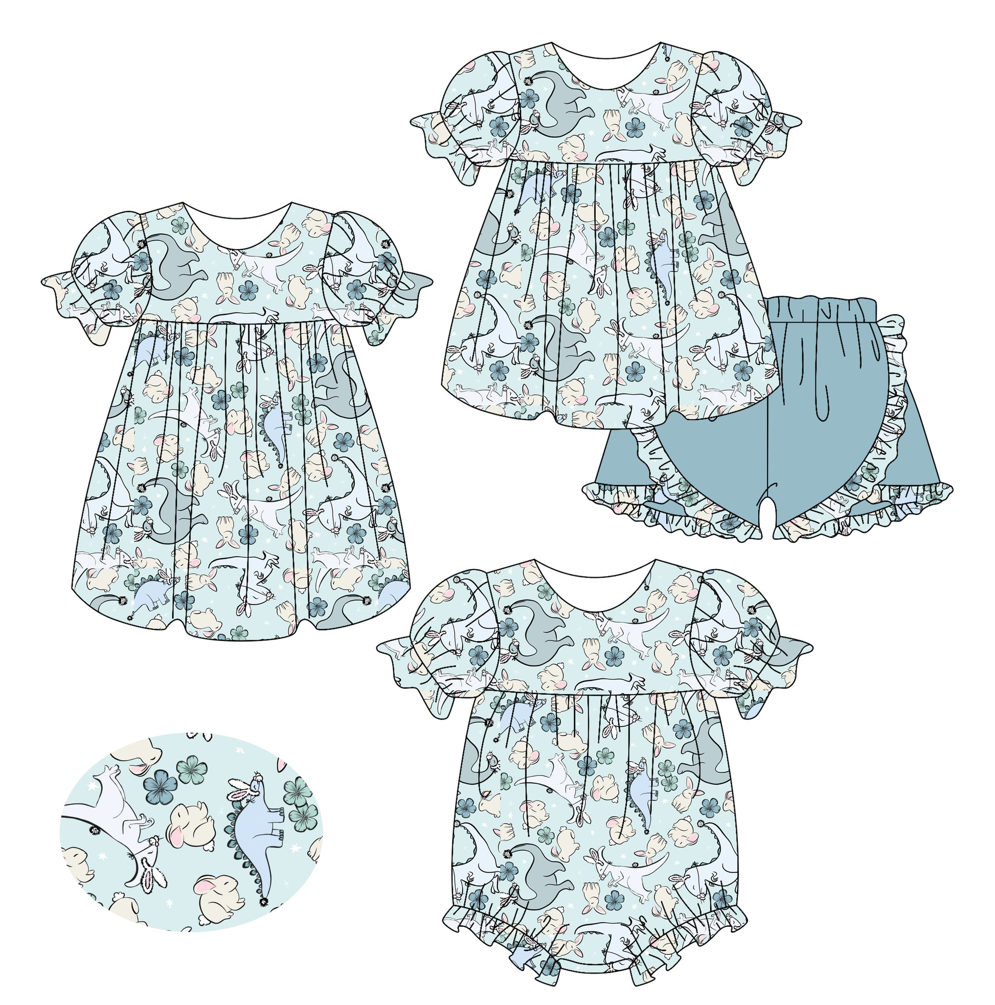 25.123 custom each style moq 5 eta 6-8week Sibling Sister baby short sleeve shorts sets and romper and dress match design