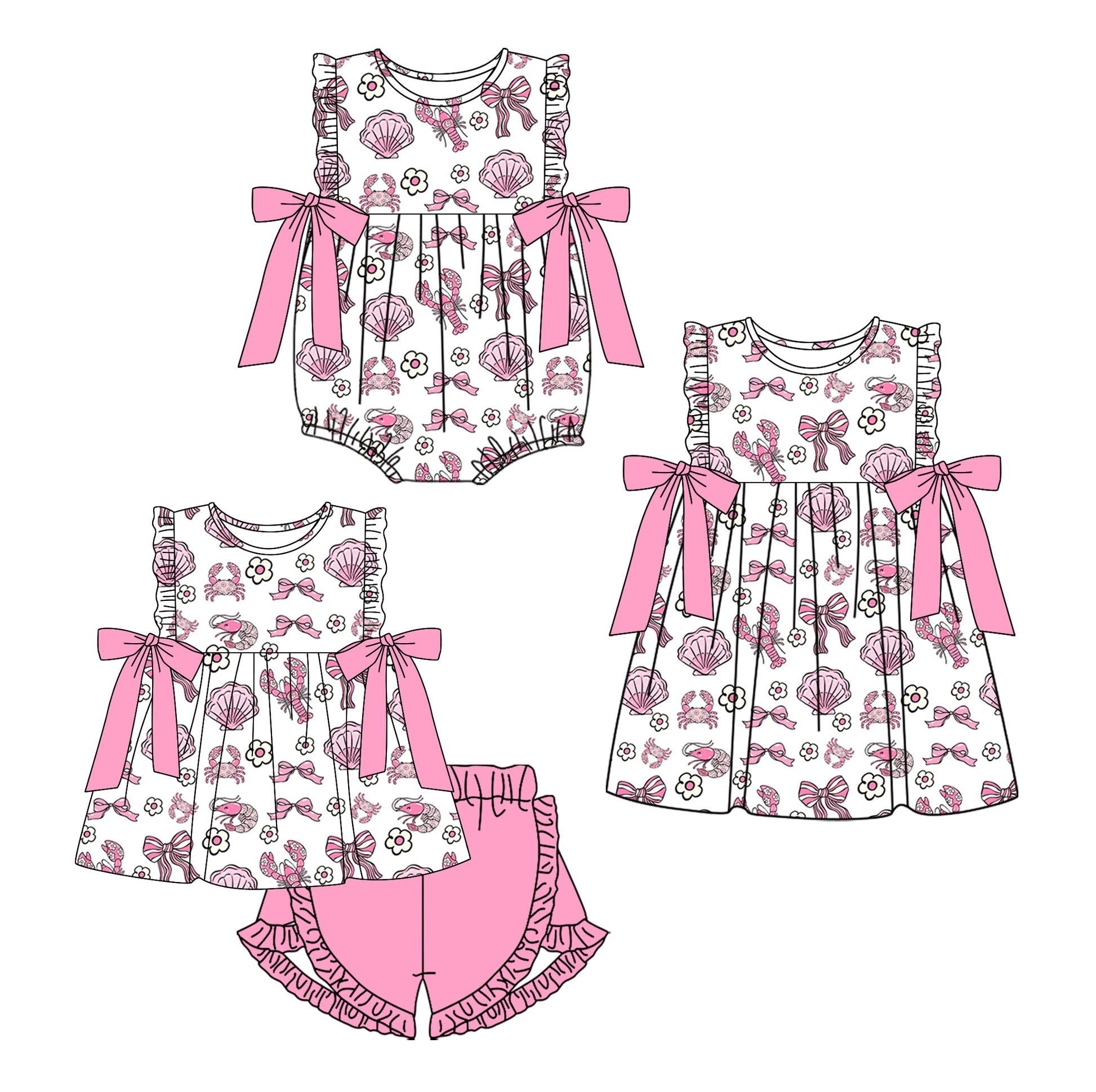 26.1.2 custom each style moq 5 eta 6-8week Sibling Sister bow lobster baby short sleeve shorts sets and romper and dress match design