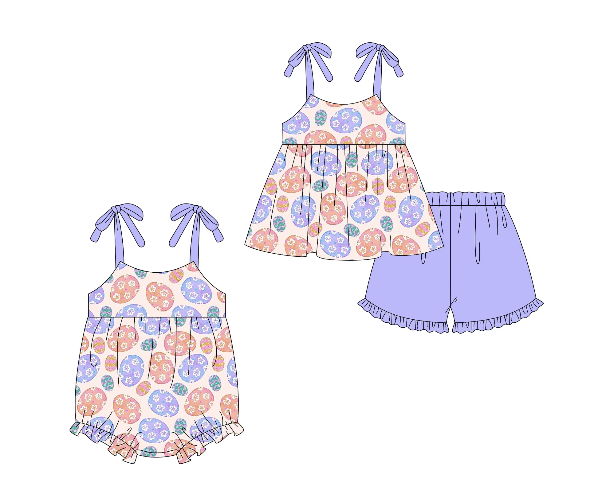 26.1.5 custom each style moq 5 eta 6-8week Sibling Sister easter baby girl short sleeve shorts sets and romper match design