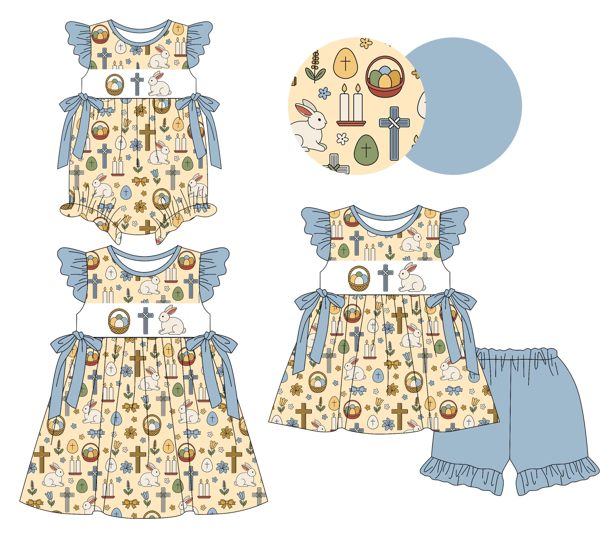 26.1.5 custom each style moq 5 eta 6-8week Sibling Sister easter baby short sleeve shorts sets and romper and dress match design