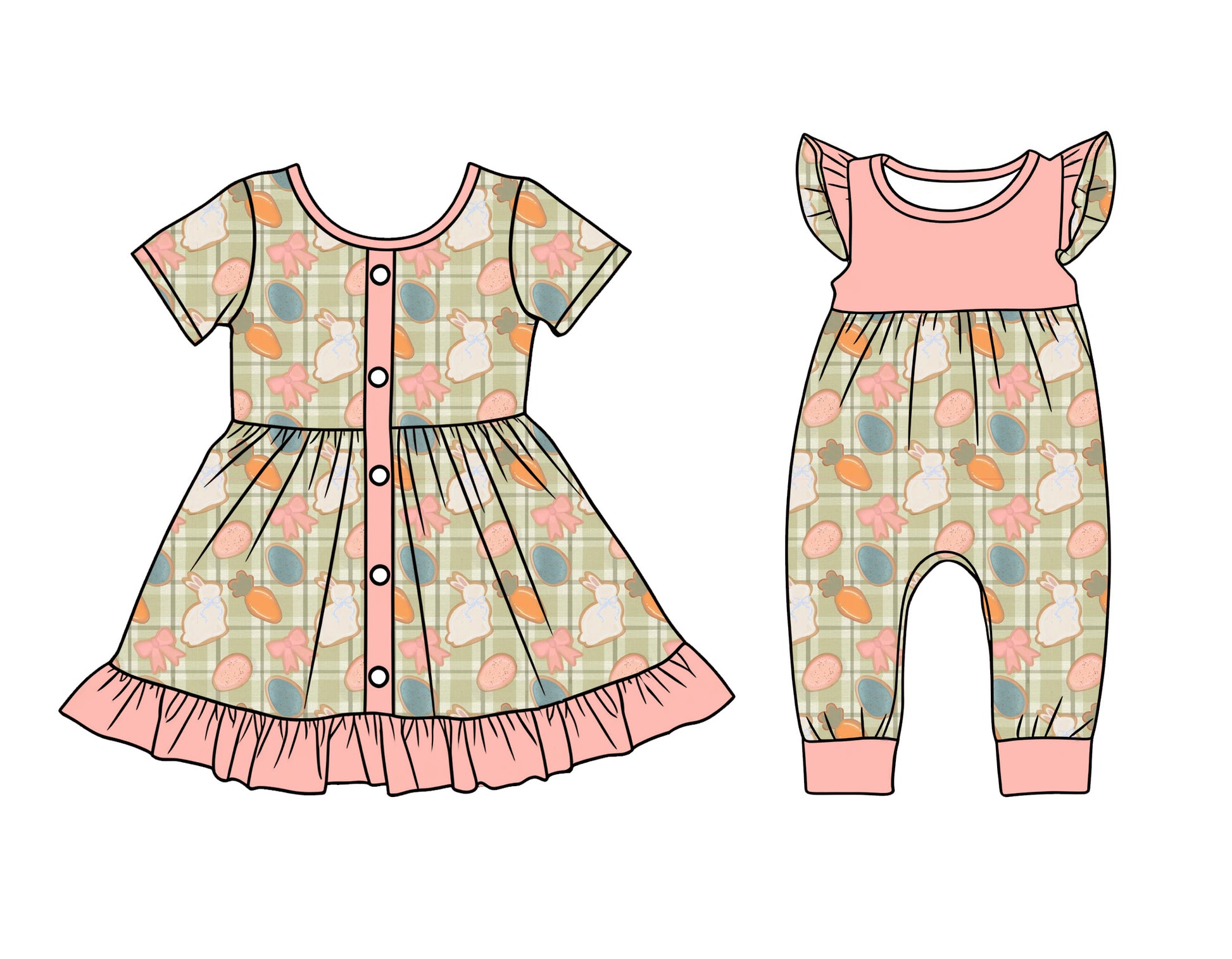 26.1.7 custom each style moq 5 eta 6-8week Sibling Sister bunny bow baby short sleeve romper and dress match design
