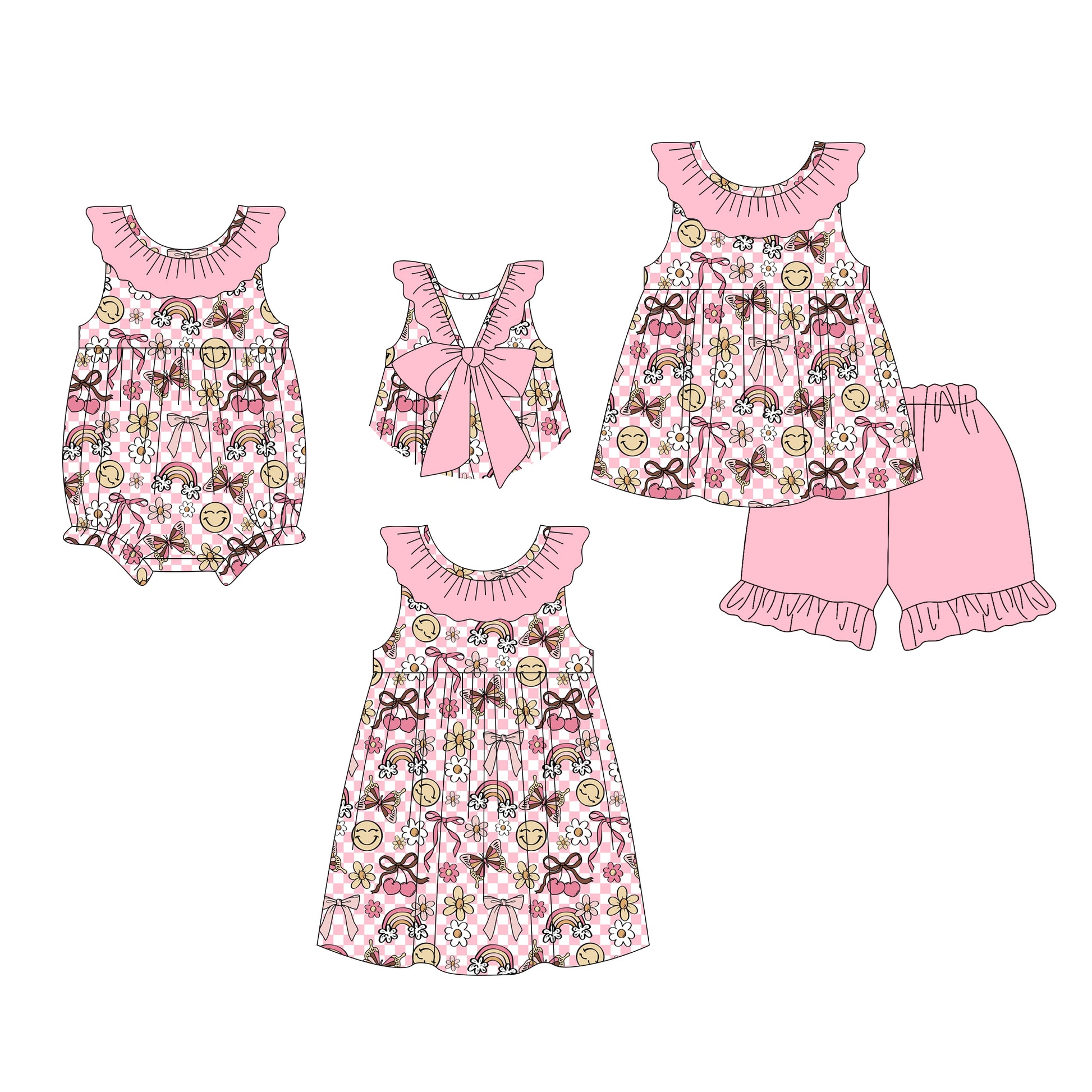 26.1.8 custom each style moq 5 eta 6-8week Sibling Sister bow baby short sleeve shorts sets and romper and dress match design
