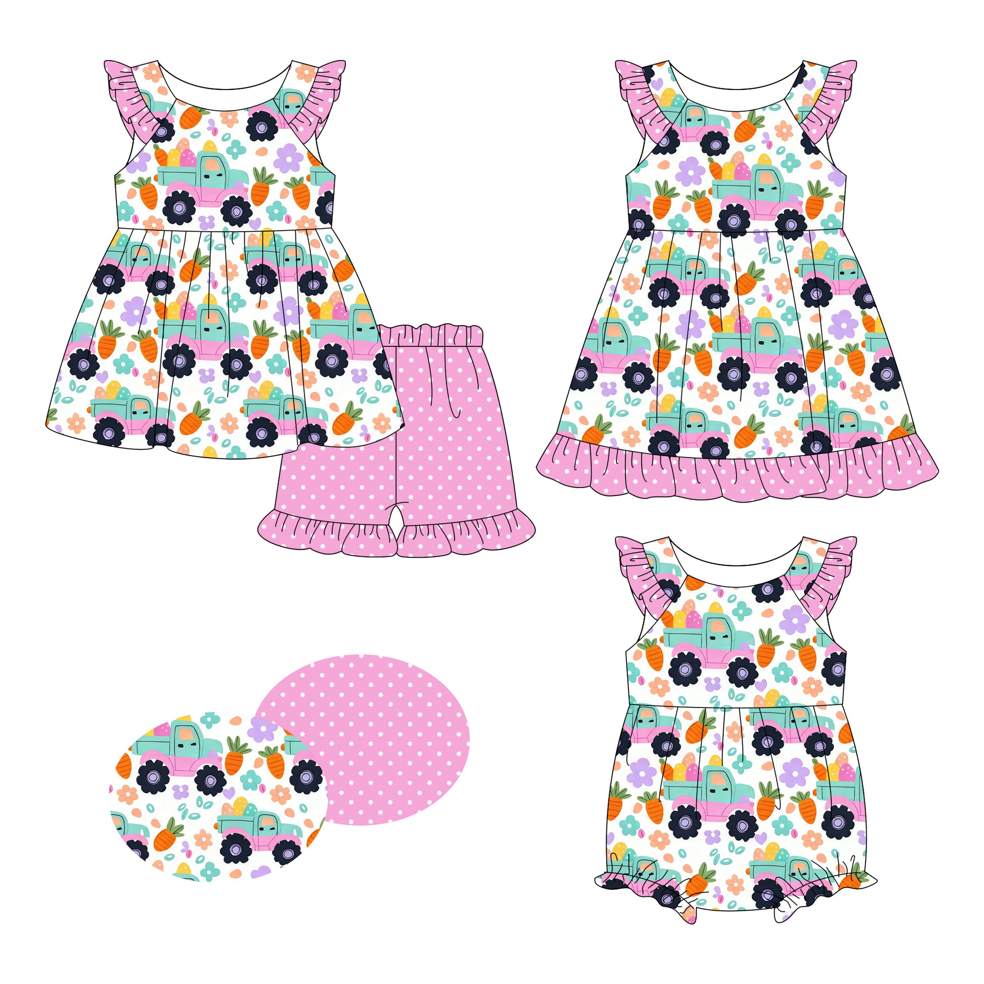 26.1.8 custom each style moq 5 eta 6-8week Sibling Sister easter floral baby short sleeve shorts sets and romper and dress match design
