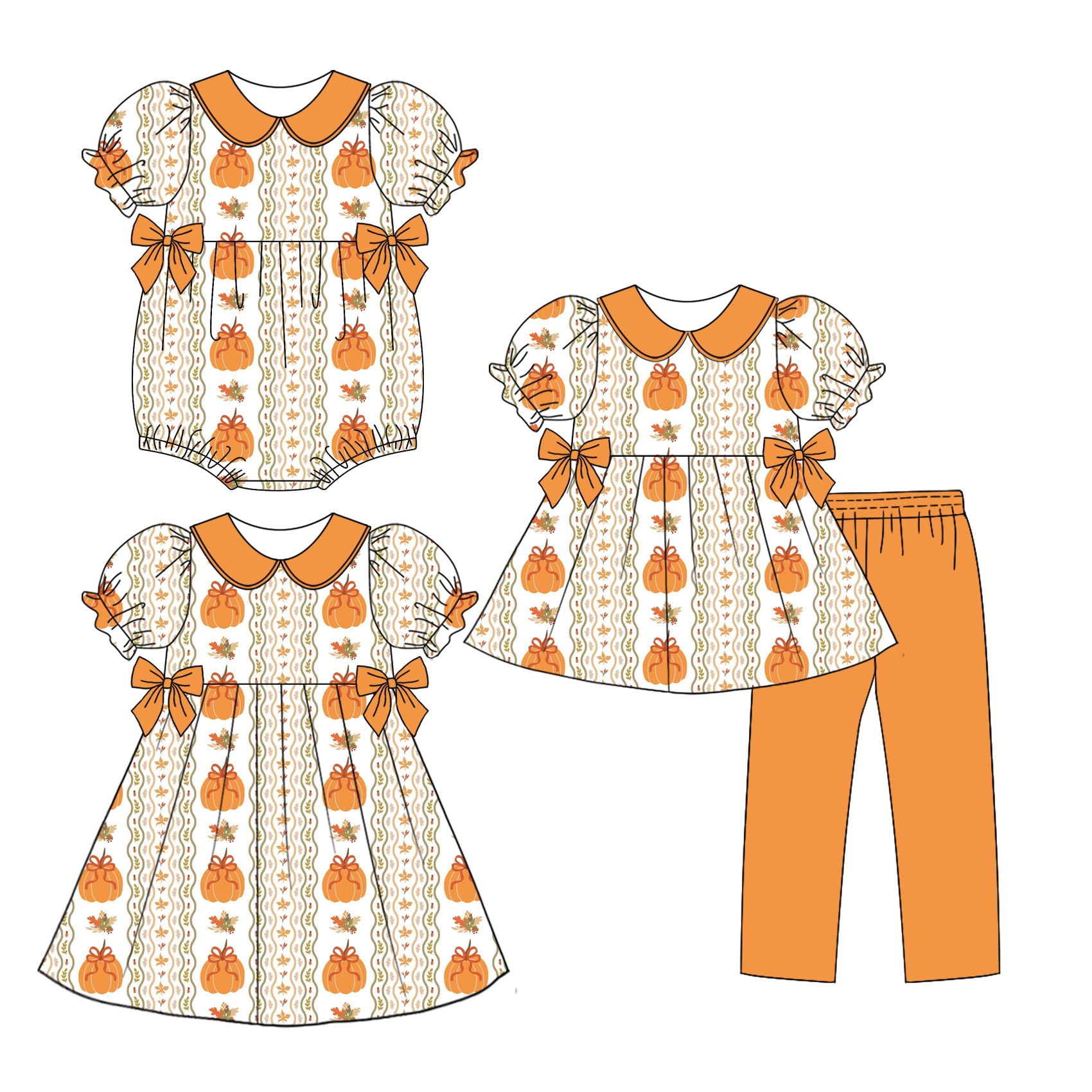 3.15 custom each style moq 5eta 4-6week Sibling Sisters bow baby girl short sleeve pants sets and dress and rompers match family design