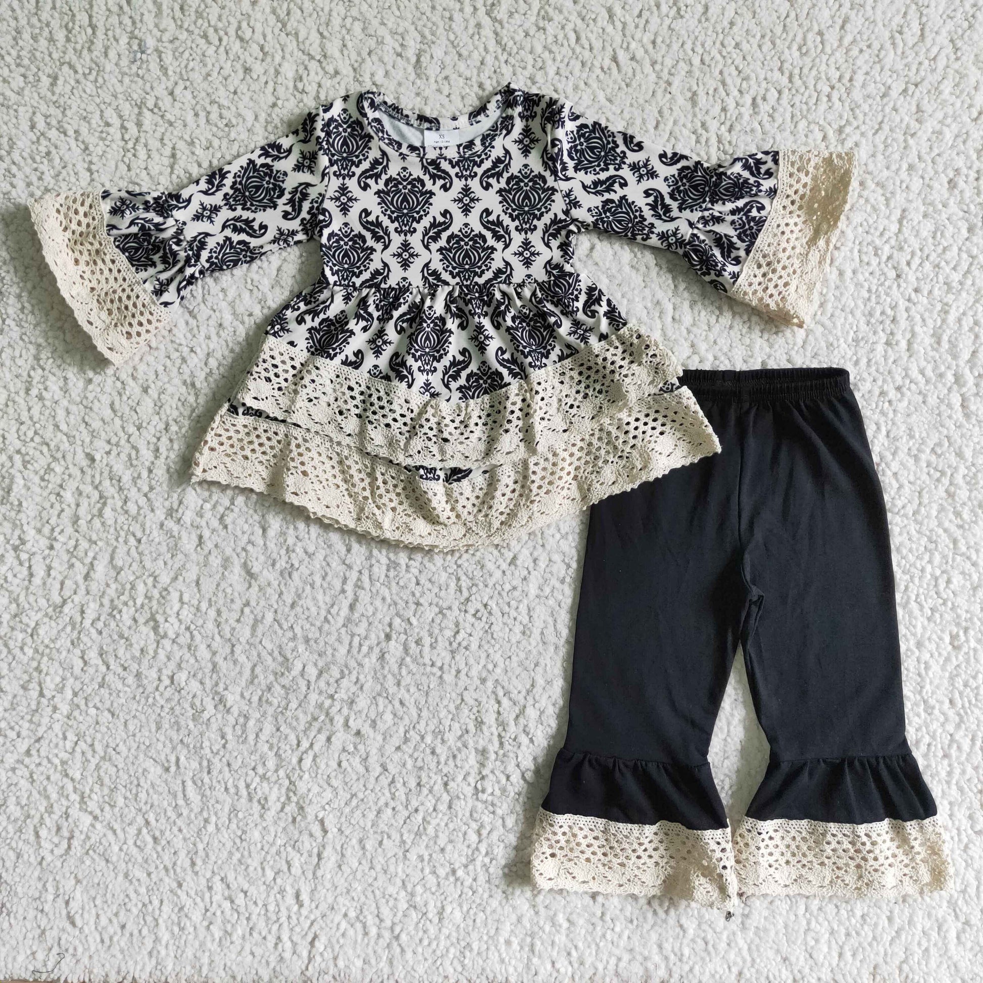 6 A11-16 Lace Trim Long Sleeve Top Black Trousers