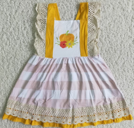 baby girls Halloween dress over knee pumpkin print clothes flying sleeve
