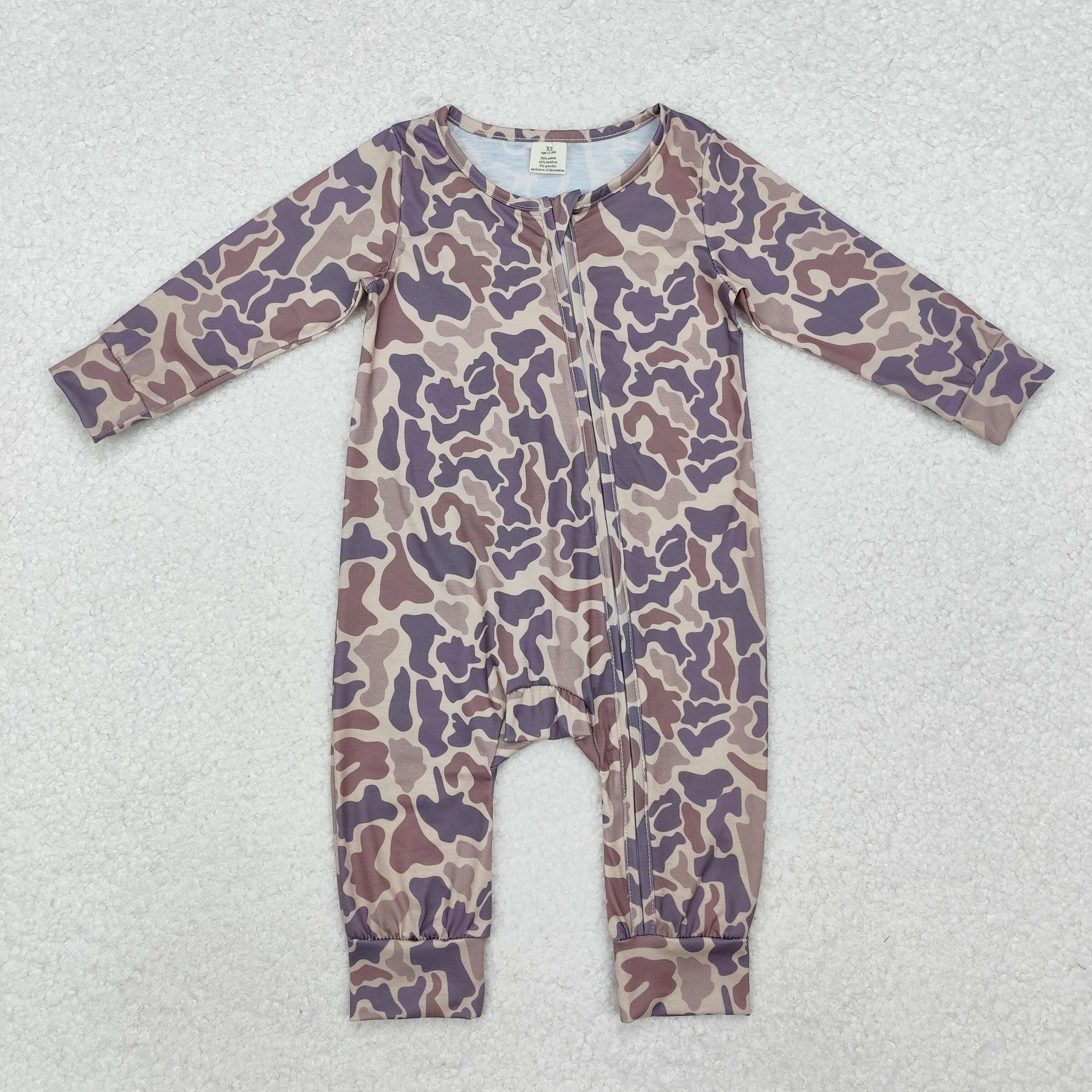BAMBOO RTS NO MOQ ETA 5/7days Arrived LR2050 Modal camouflage light brown zipper long sleeve jumpsuit