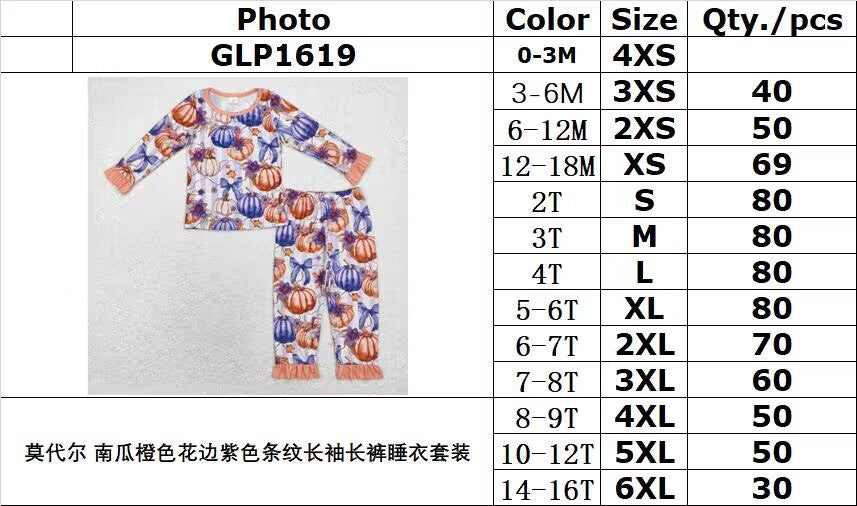bamboo rts no moq GLP1619 Modal Pumpkin Orange Lace Purple Striped Long Sleeve Pants Pajama Set