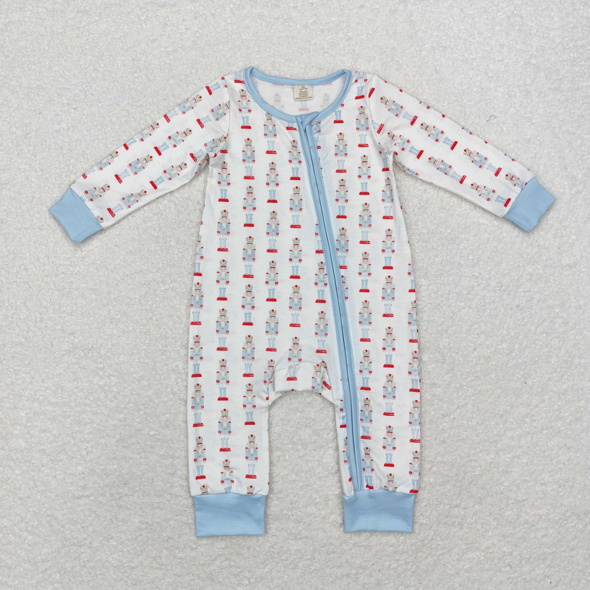 bamboo rts no moq LR1184 Modal Christmas cartoon nutcracker blue and white zipper long-sleeved jumpsuit