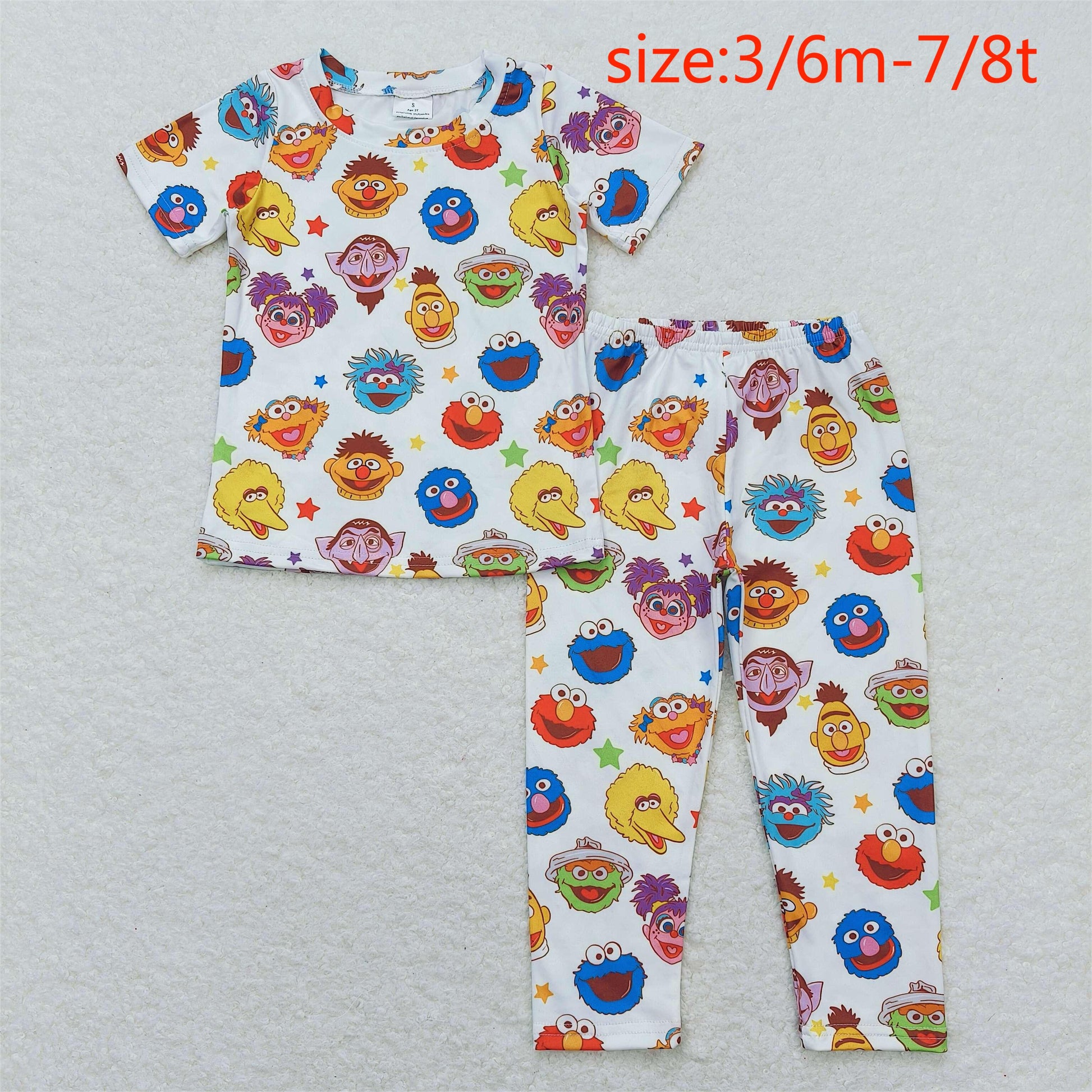 BSPO0332 Cartoon Sesame Street Star White Short Sleeve Long Pants Pajama Set