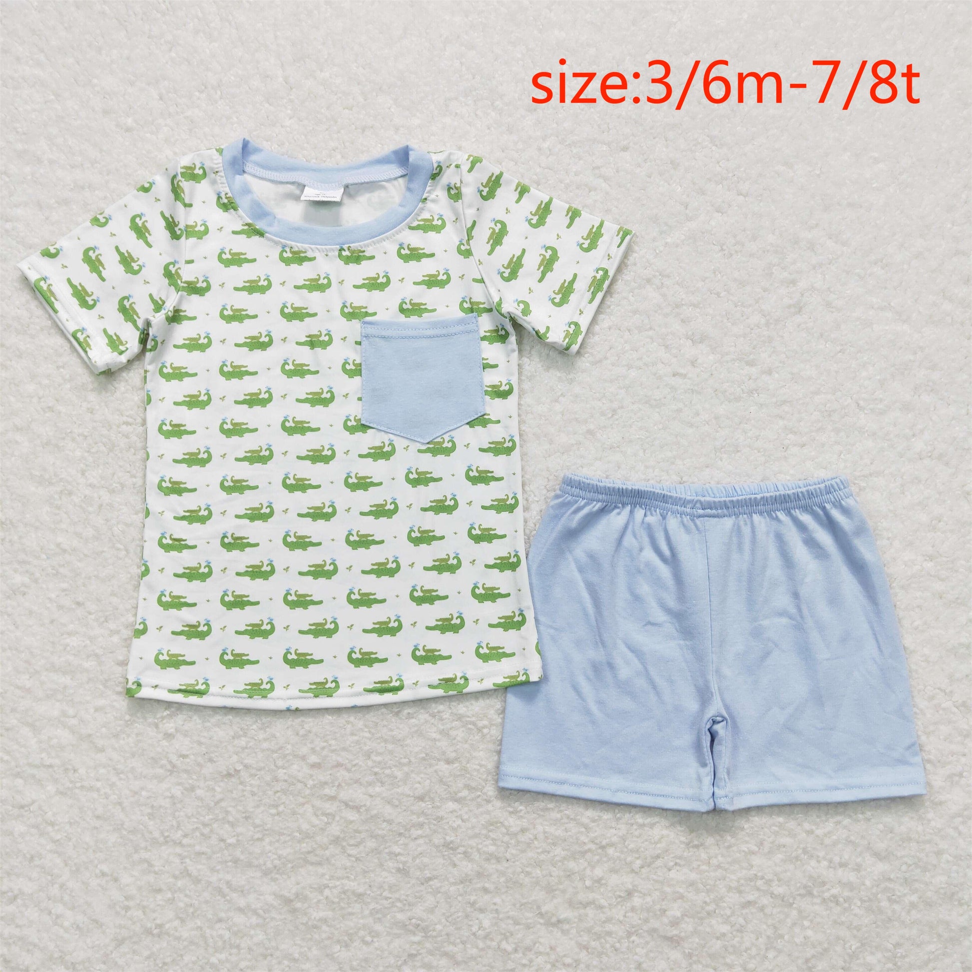 BSSO0556 Crocodile white short sleeve blue shorts suit