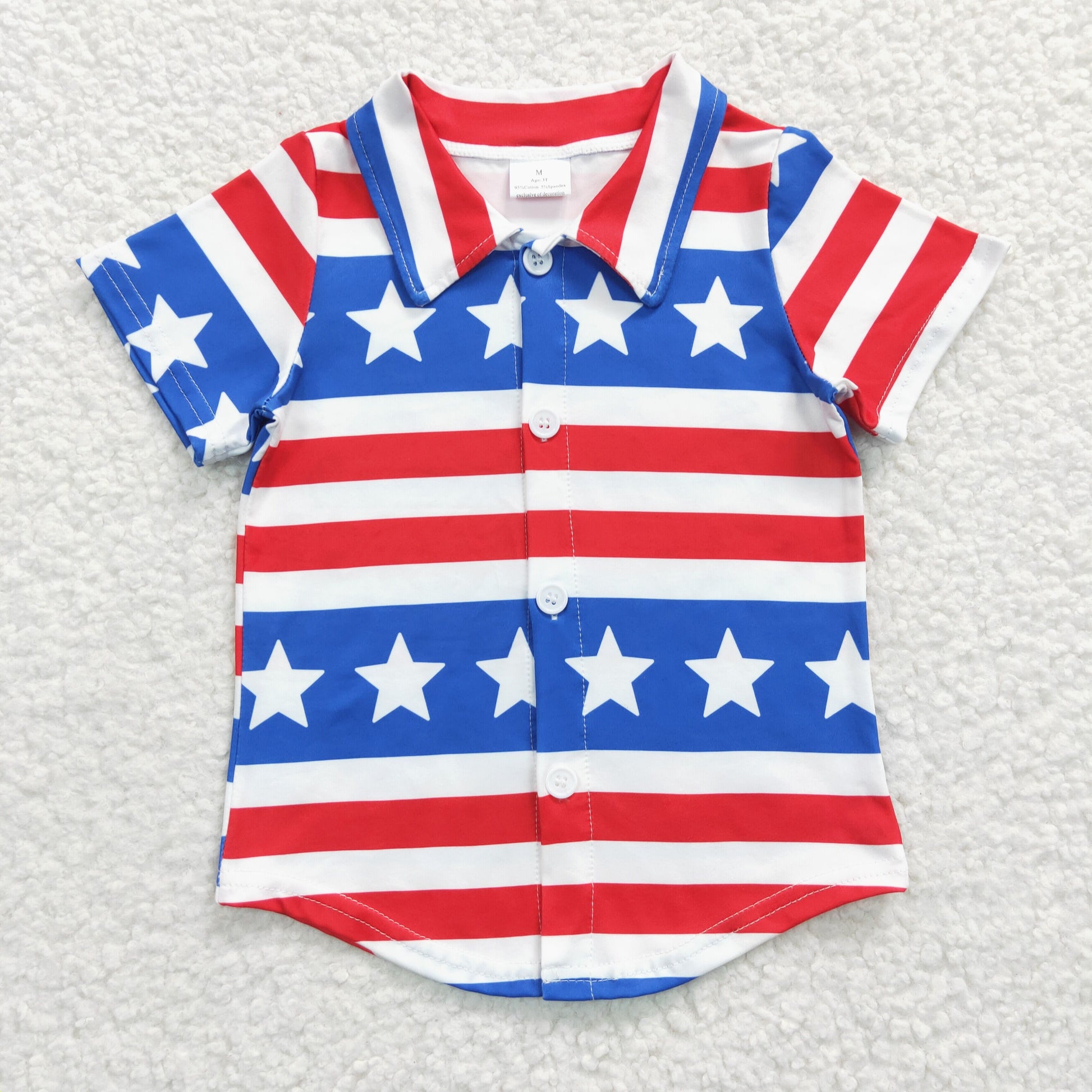 BT0196 Boys National Day Striped Stars Short Sleeve Top