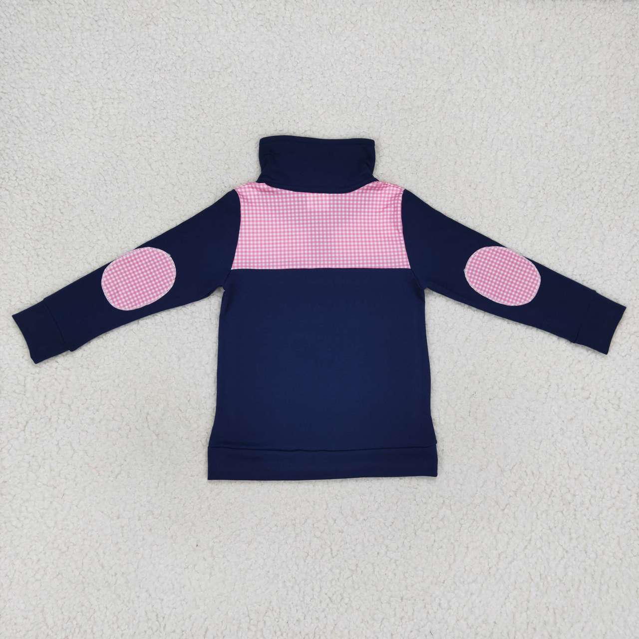 BT0290 Red plaid navy blue zipper long-sleeved top