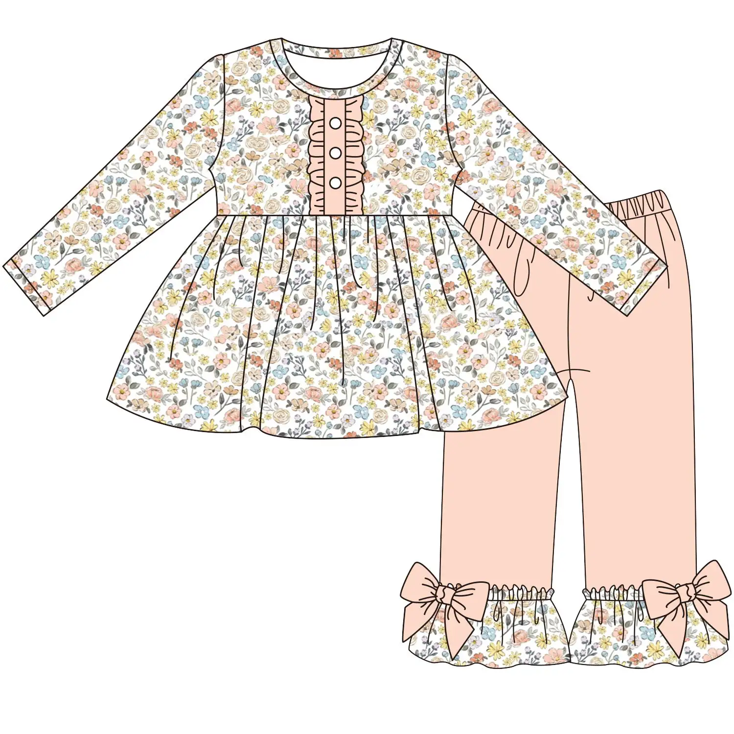 Custom moq 3 eta 7/8week moq 5 eta /4/5week Orange and pink floral pleated button long sleeve suit