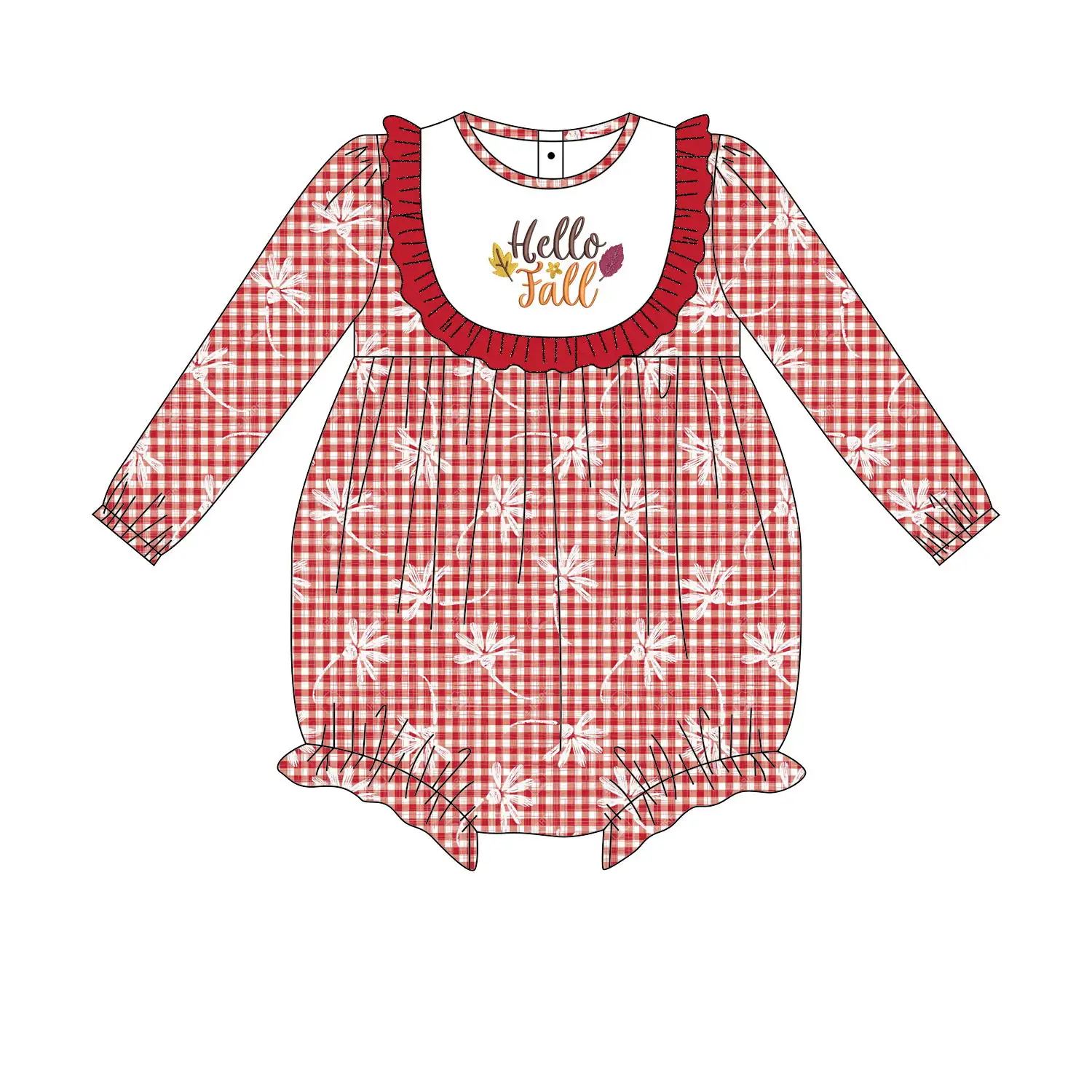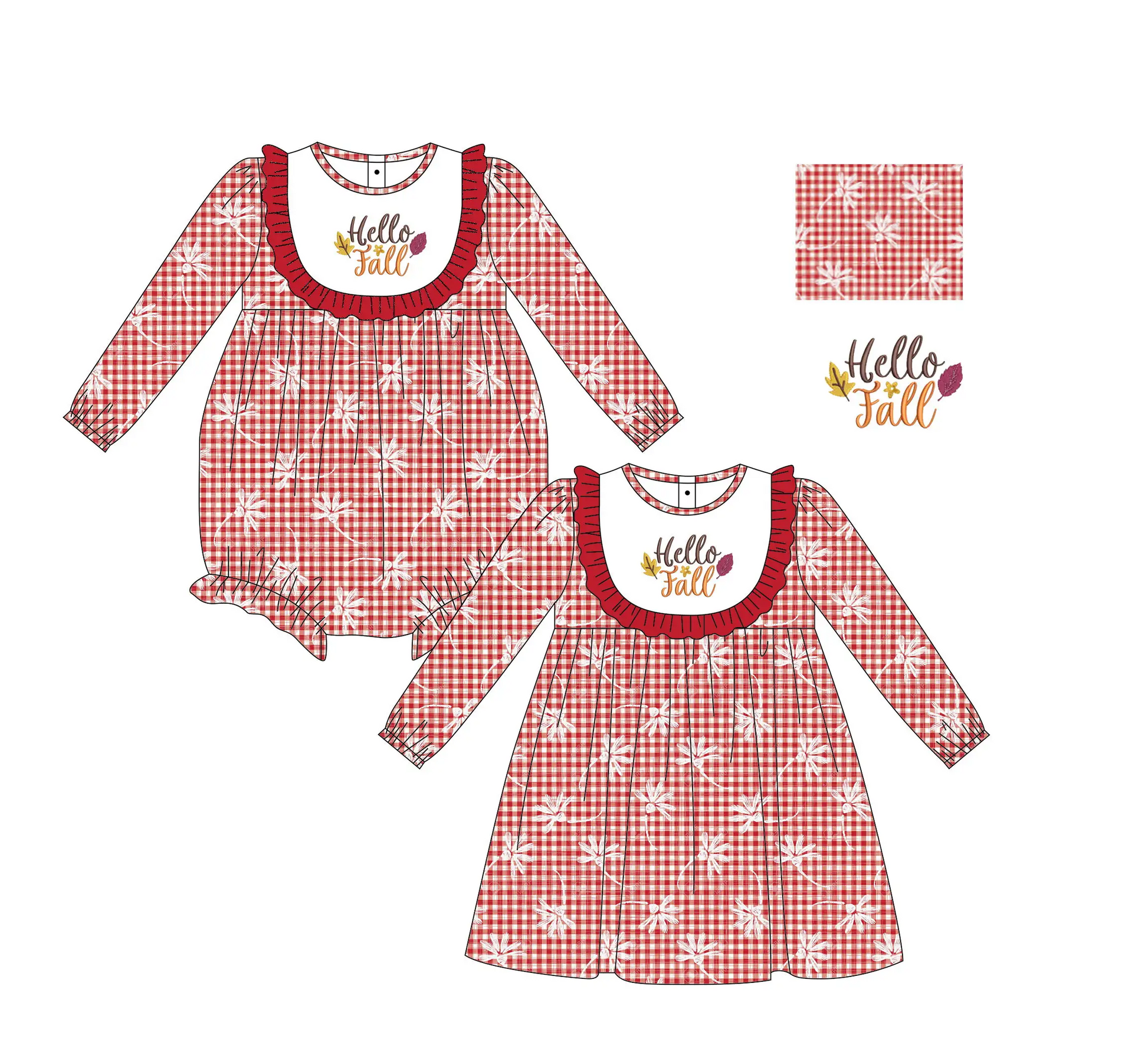 Custom moq 3 MIX SIZE eta 7/8week moq 5 eta /4/5week White dandelion pattern red plaid long-sleeved mixed suit