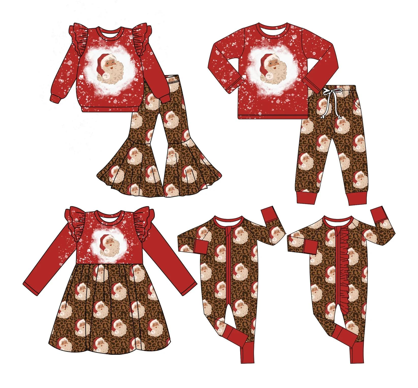 Custom moq 5 each style eta 6-7weeks baby girl clothes Christmas red long sleeve pants set 2 and dress and rompers 2-25.8.15