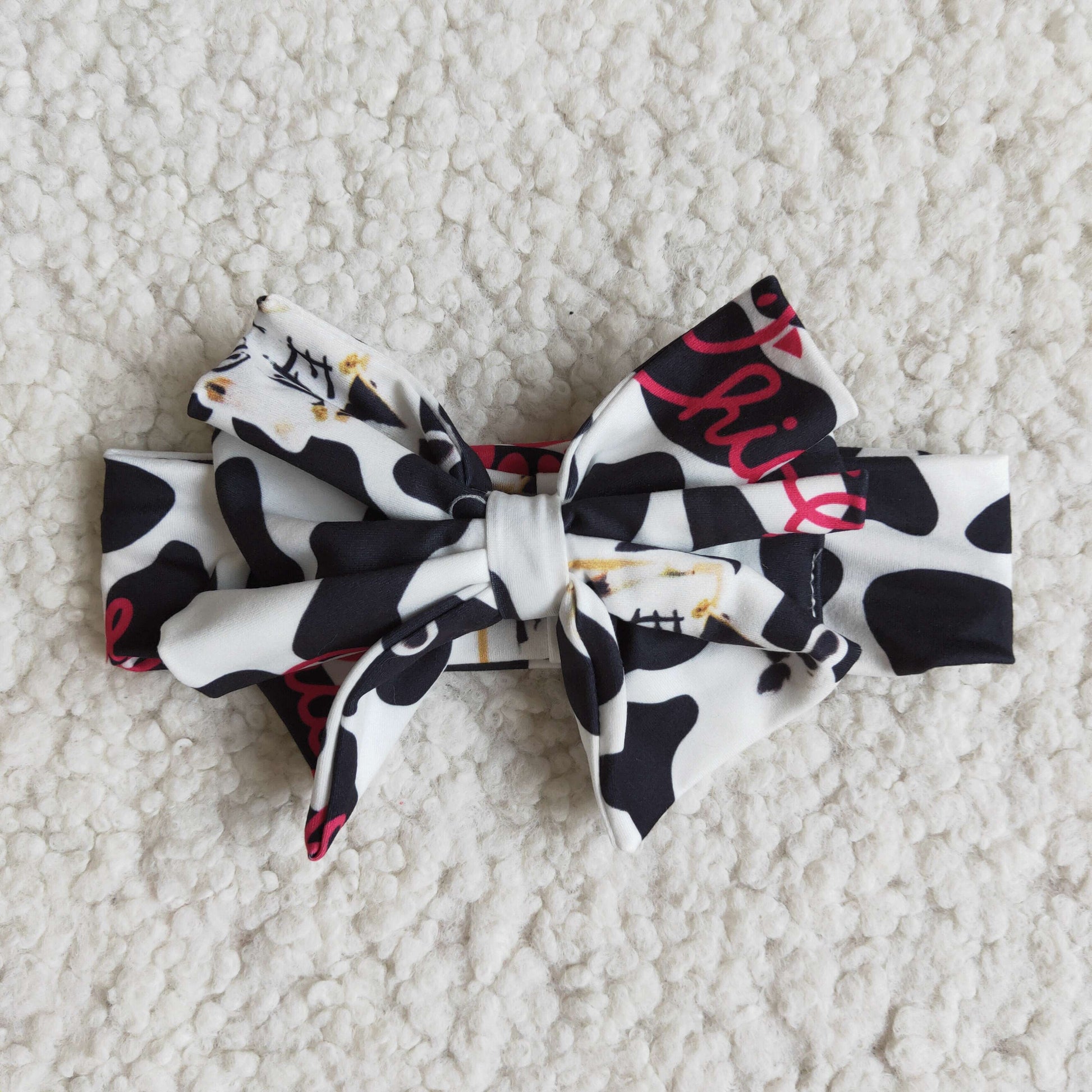 RTS NO MOQ ETA 5/7days Arrived E7-2 White Short Sleeve Cow Spot Flared Pants with bow outifts