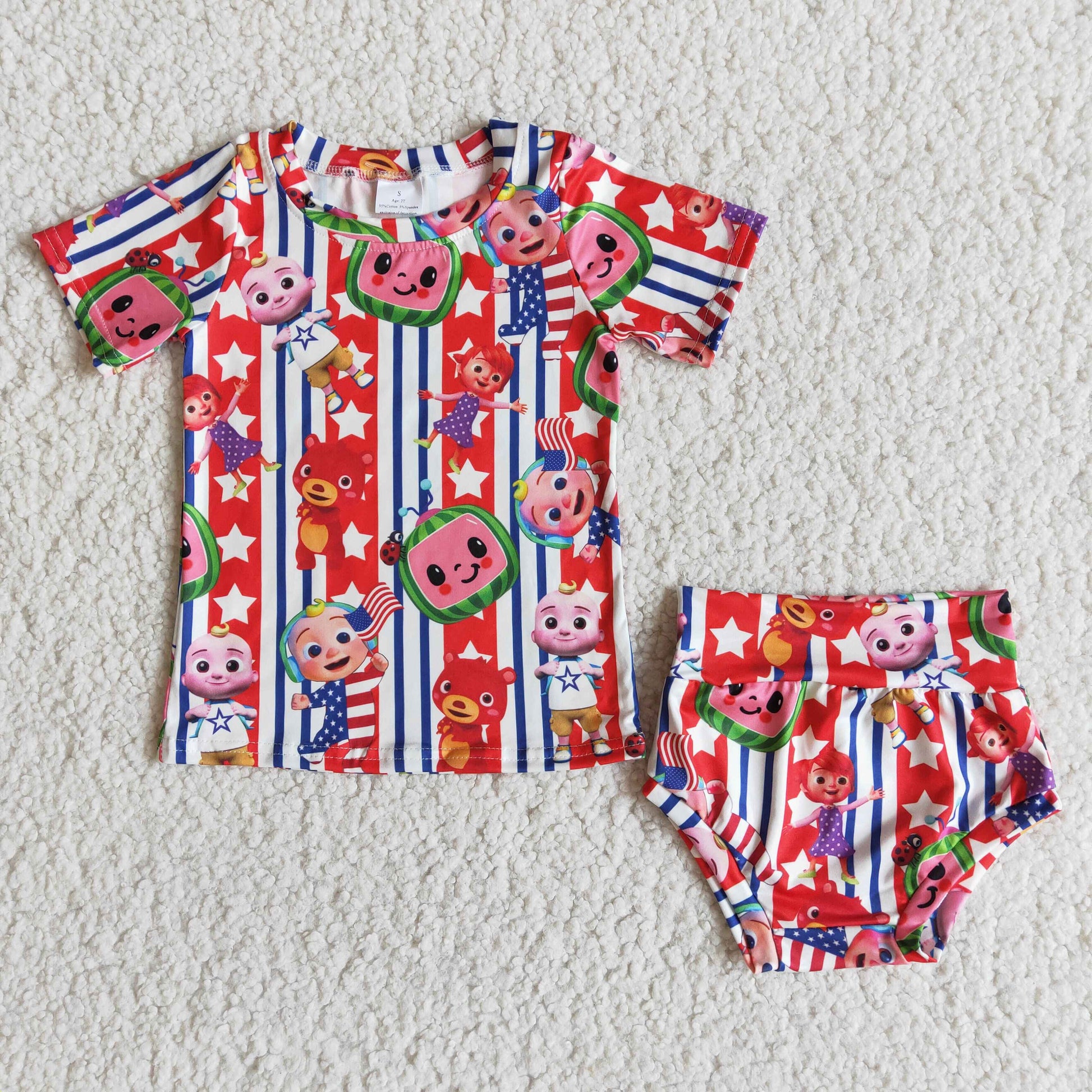 rts no moq D4-5 cocomelon striped short-sleeved thong suit