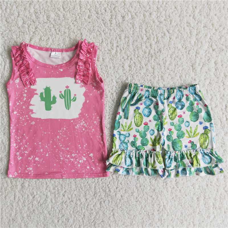 Girls Rose Red Sleeveless Top Cactus Shorts Set