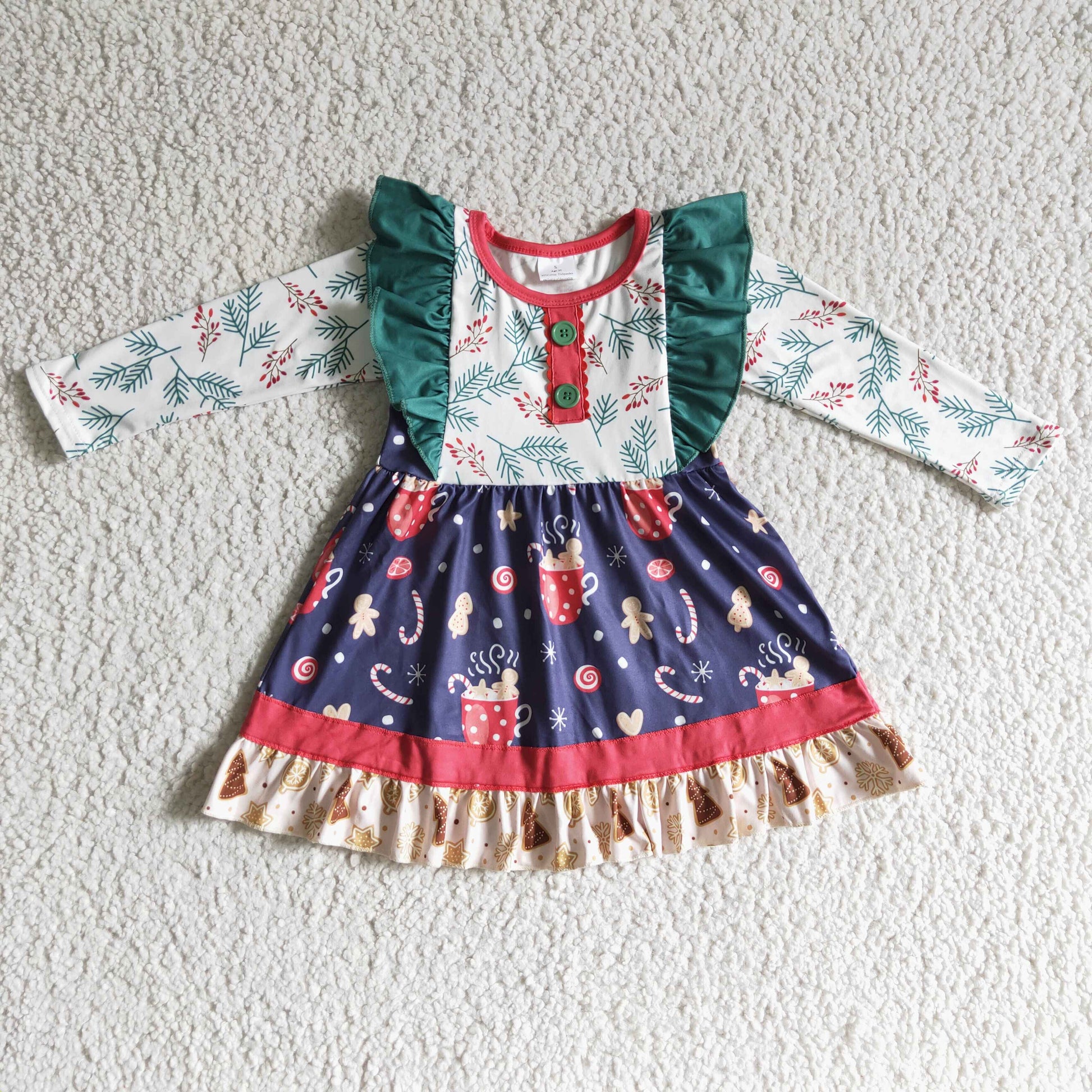 RTS NO MOQ ETA 5/7days arrived GLD0142 baby christmas clothing long sleeve cartoon print kids dresses for girls milk silk