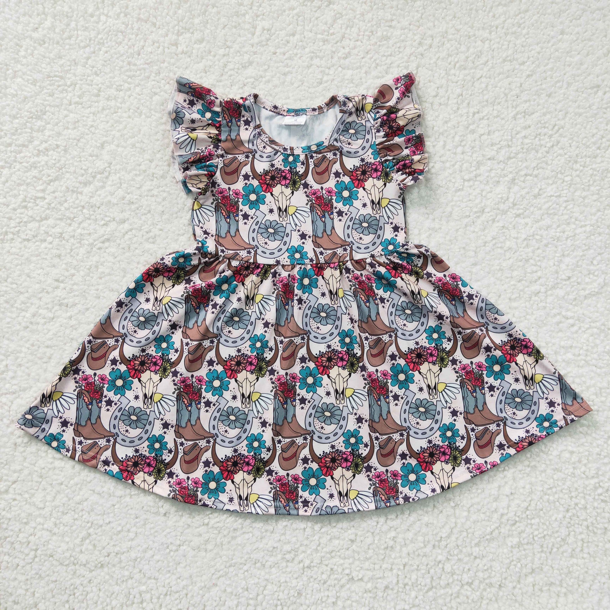 rts no moq GSD0165 Girls Boots Flower Hat Fly Sleeve Dress