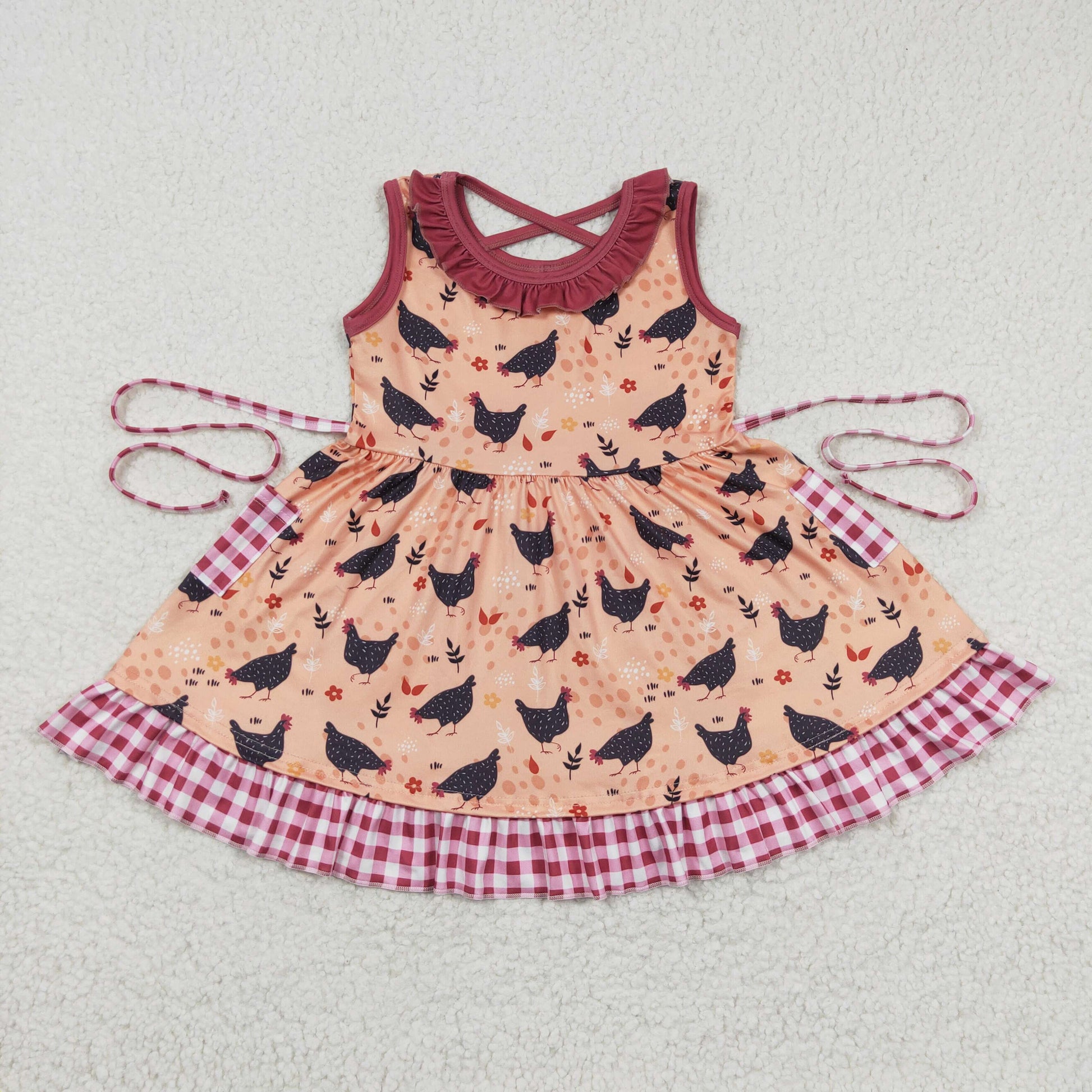 GSD0322 Black Rooster Orange Flower Pocket Tank Dress