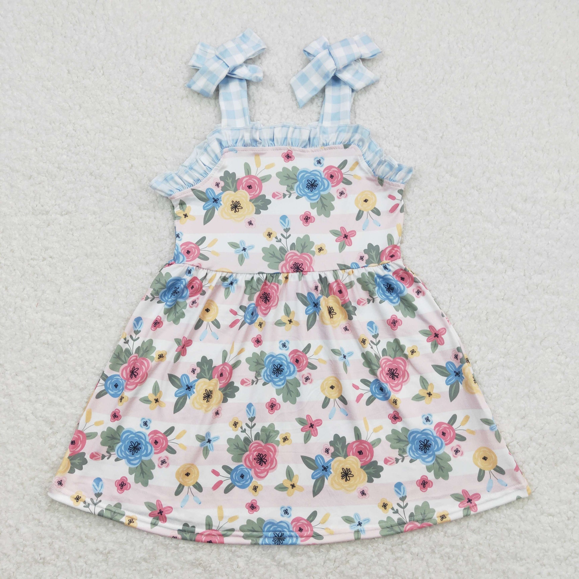 GSD0803 Floral pink striped blue and white plaid lace suspender dress·
