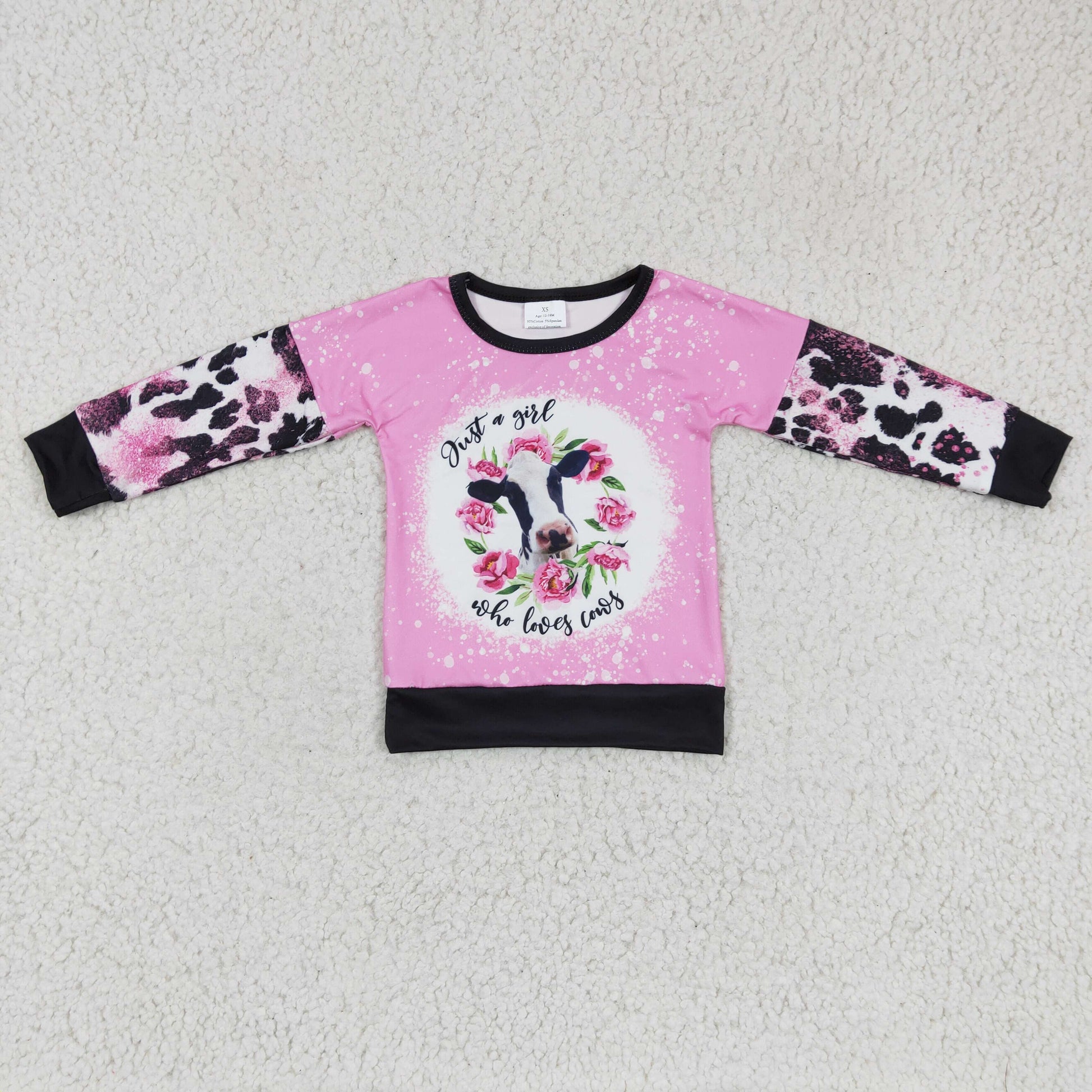 GT0077 girls shirt long sleeve top cow print clothing milk silk