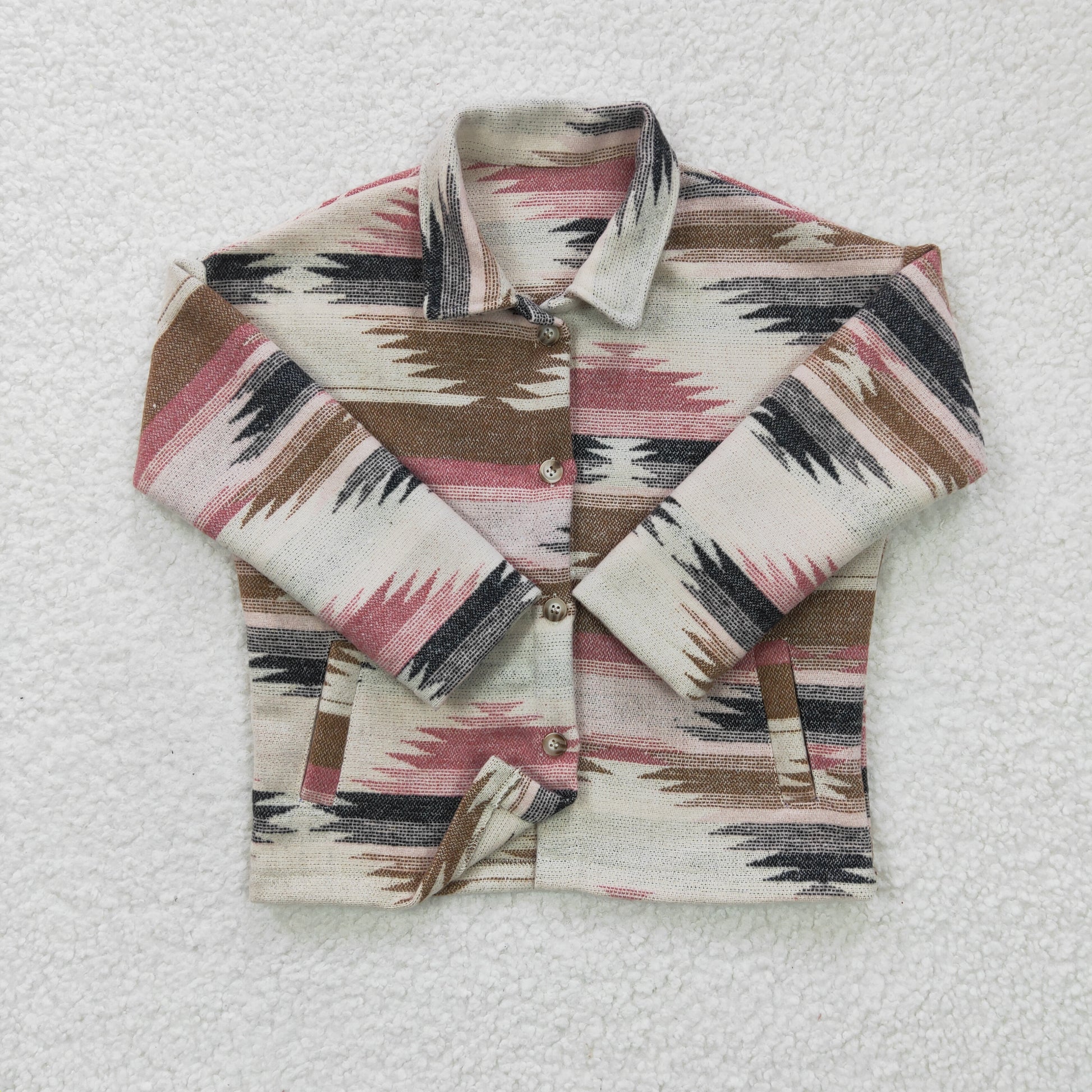 GT0084 Girls Pink Brown Geometric Stripe Pattern Shirt