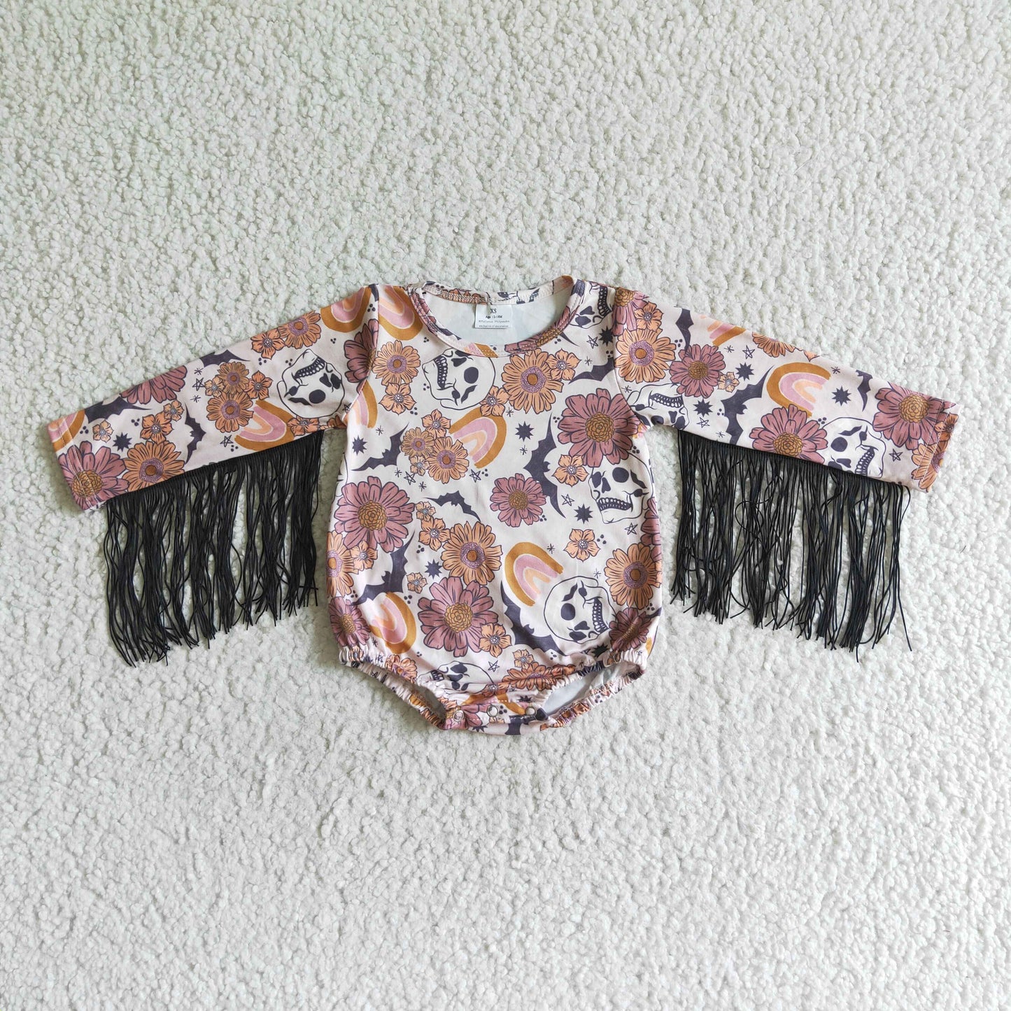 LR0064 baby clothing cartoon print long sleeve tassel bodysuit milk silk baby romper