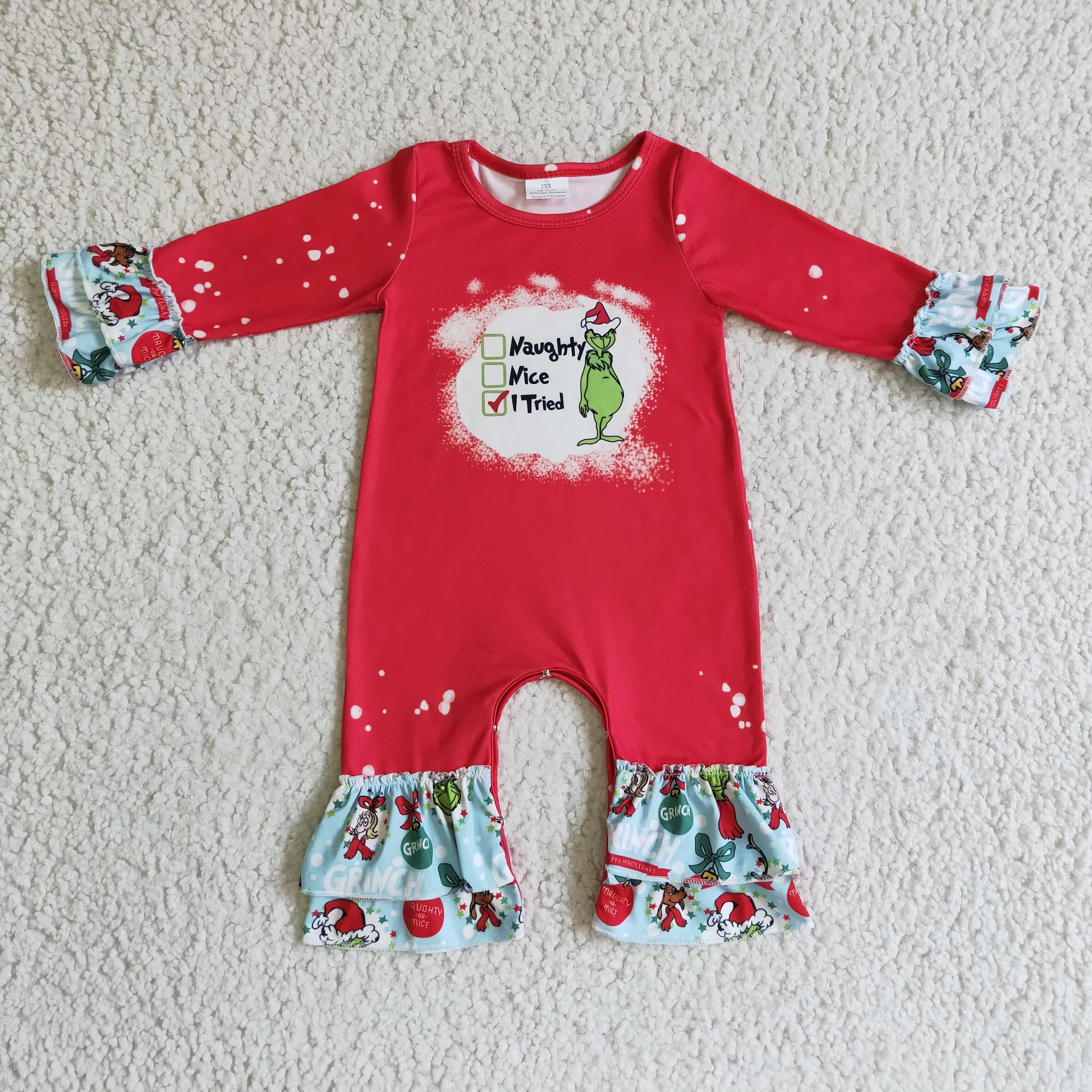LR0193 baby Christmas romper long sleeve long pants baby girls romper milk silk cartoon print