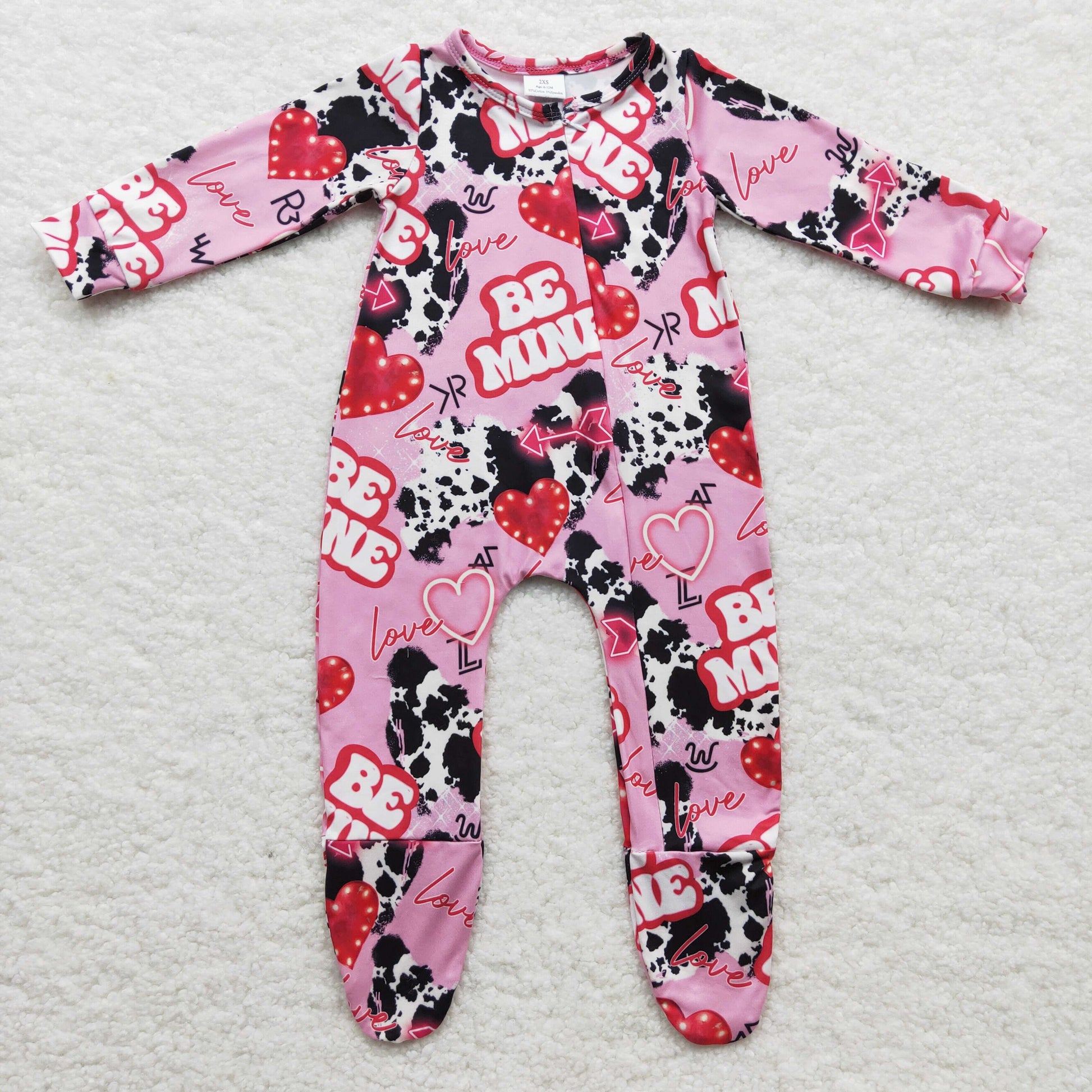 LR0235 baby Valentine's Day romper long sleeve long pants boys romper milk silk cartoon print