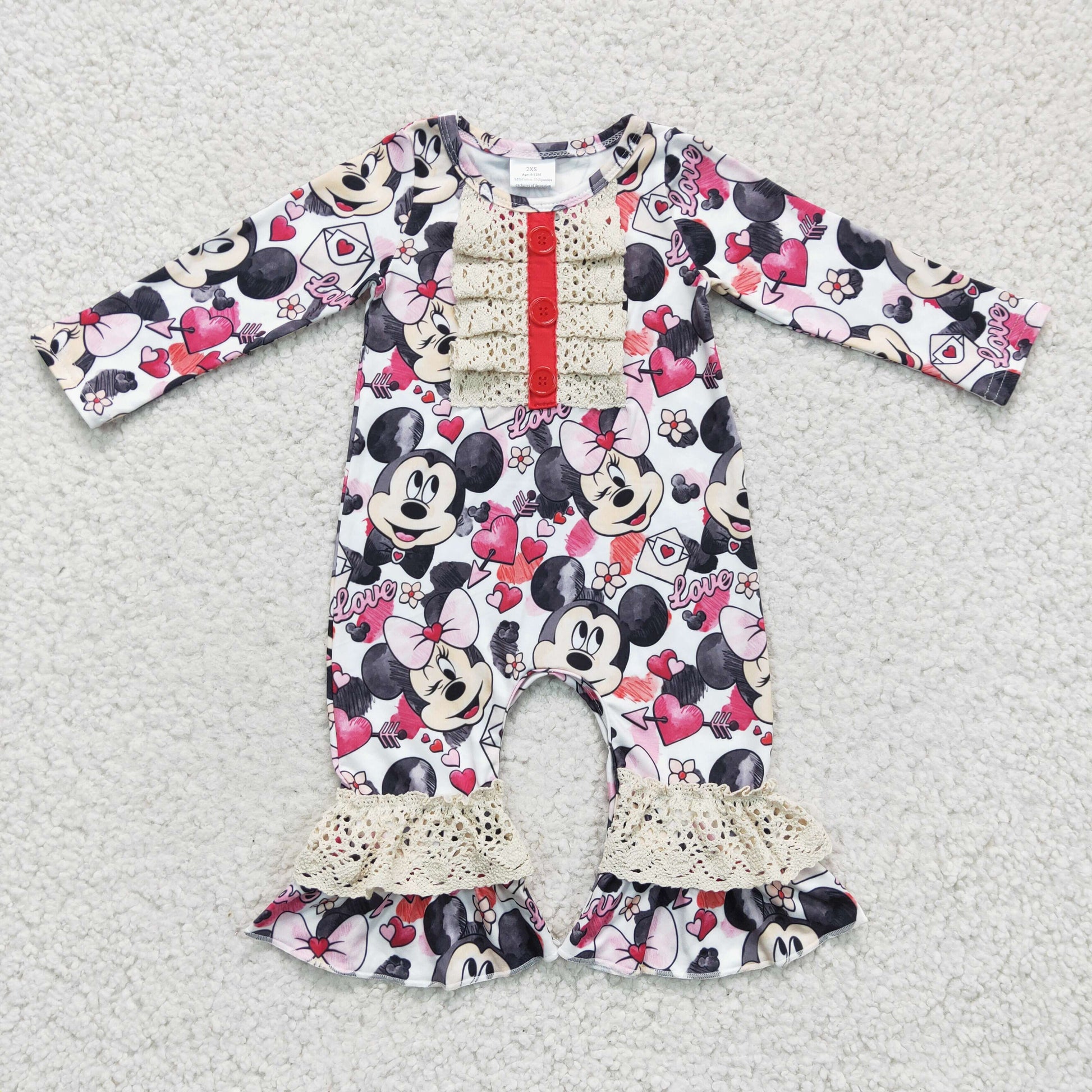 LR0245 baby Valentine's Day romper long sleeve long pants baby girls romper milk silk cartoon print
