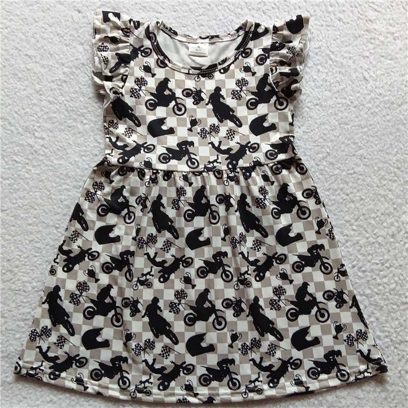 motorcycle plaid flying sleeve dress 摩托车格子飞袖裙