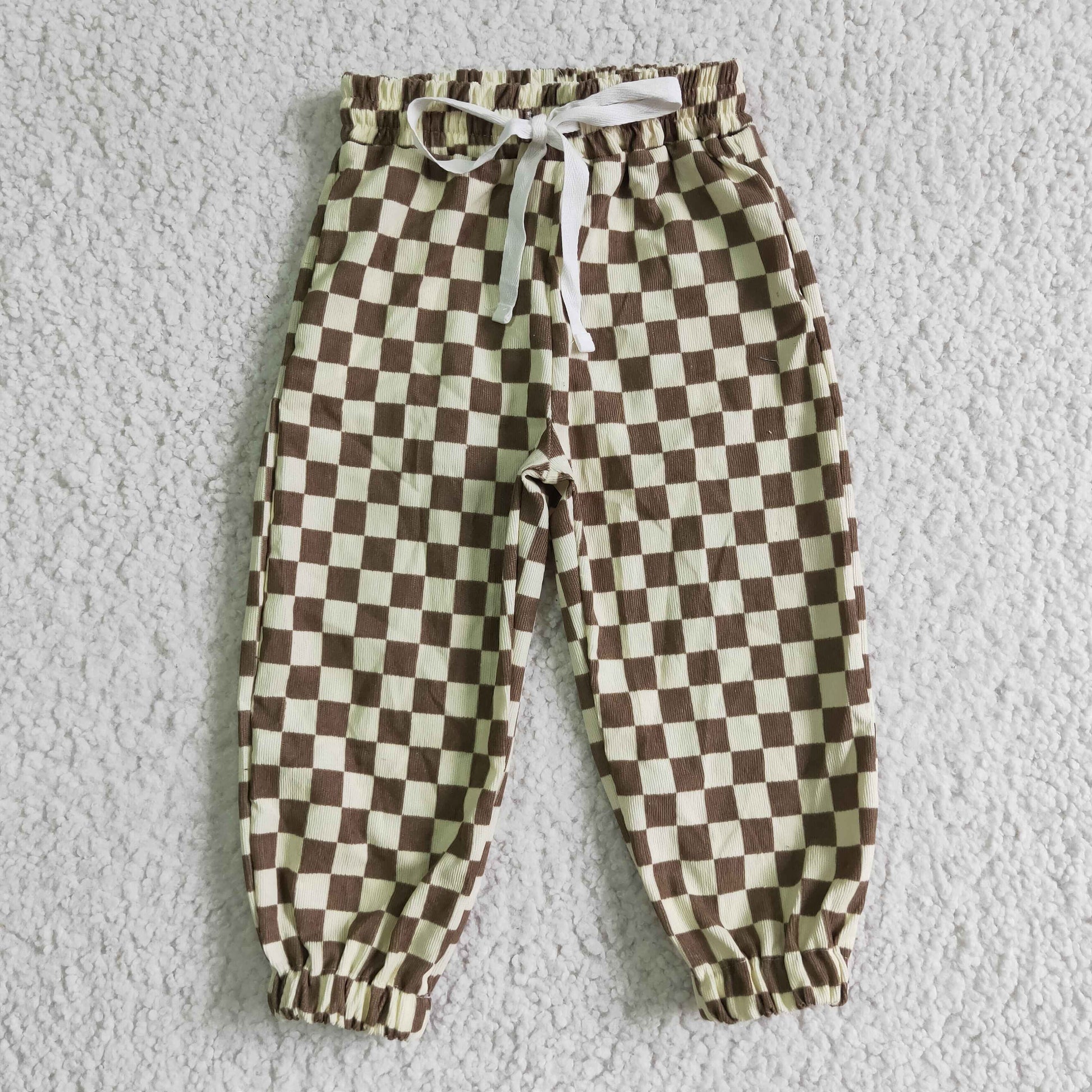 P0021 Girls Long Pants Beige Checkerboard Pants