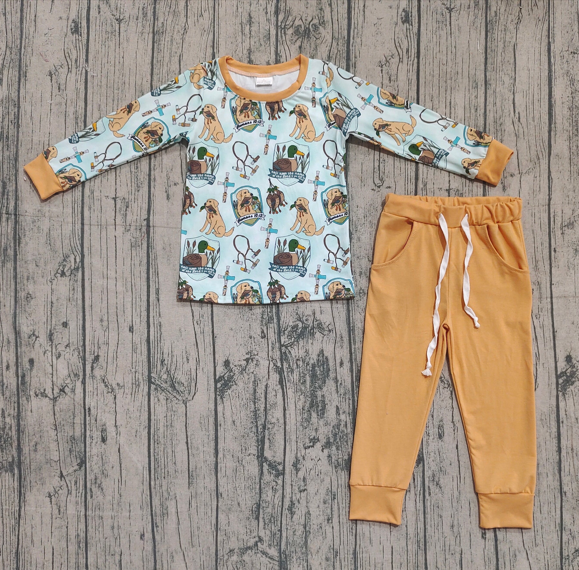 (Pre Order) No moq BLP1177 Pre-order baby boy clothes duck puppy long sleeve pants sets-2025.9.7