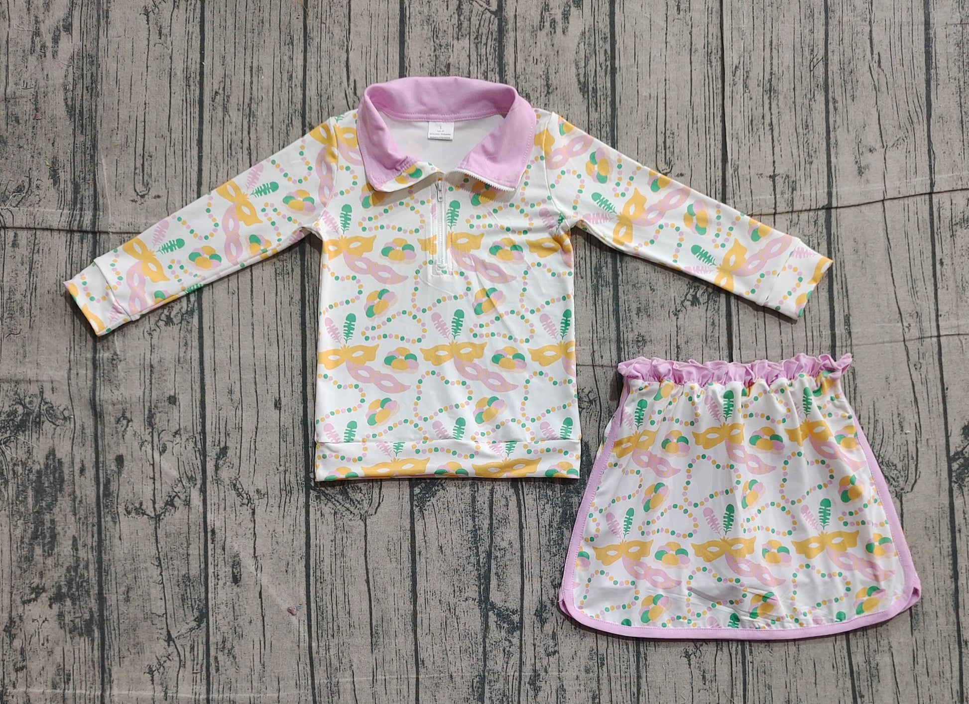 (Pre Order) No moq GLD1334 PRE-ORDER baby girl clothes mardi gras long sleeve skirts sets-2025.11.4