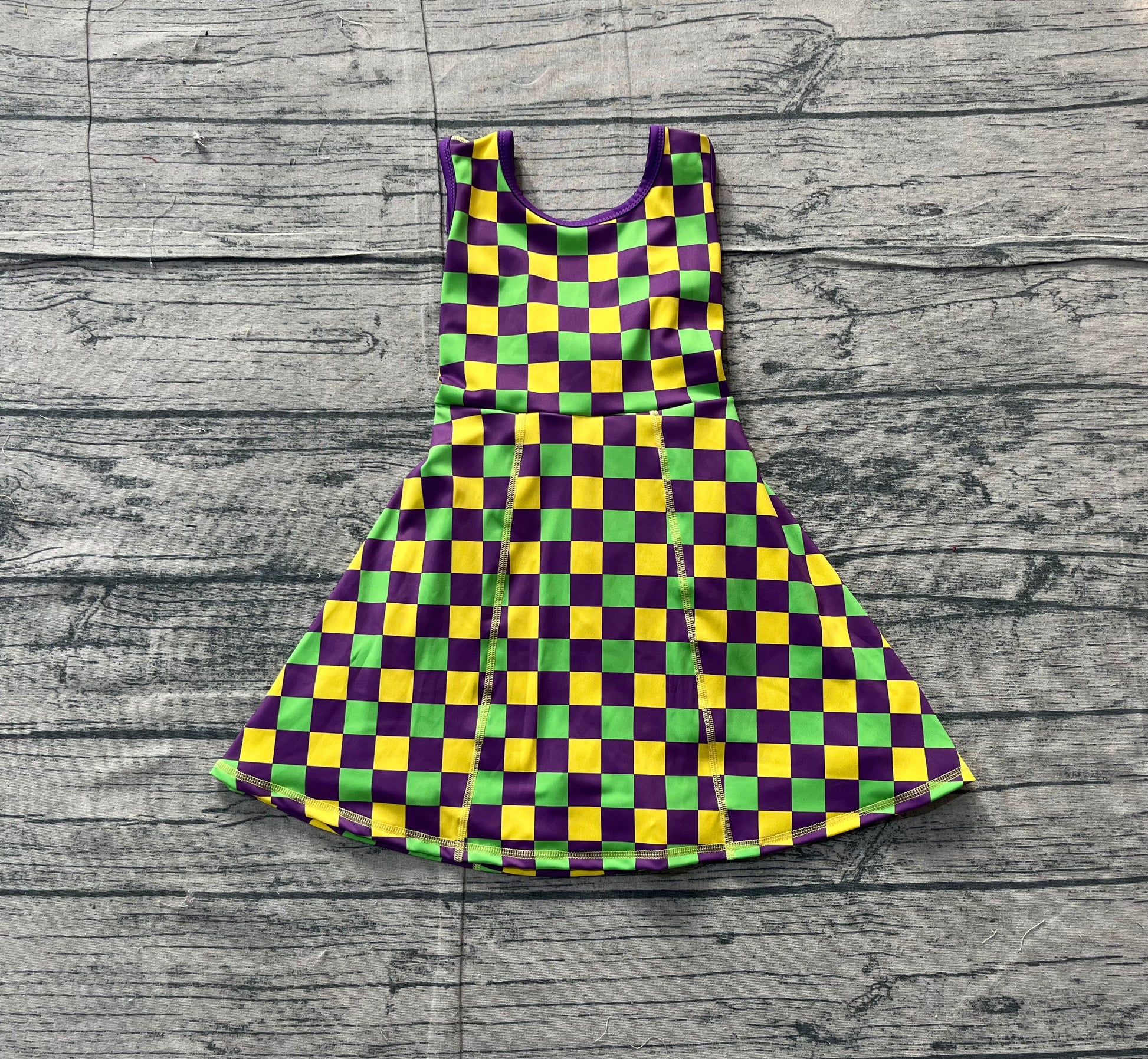 (Pre Order) No moq GSD2946 PRE-ORDER baby girl clothes yoga mardi gras sleeveless dress-2025.11.17