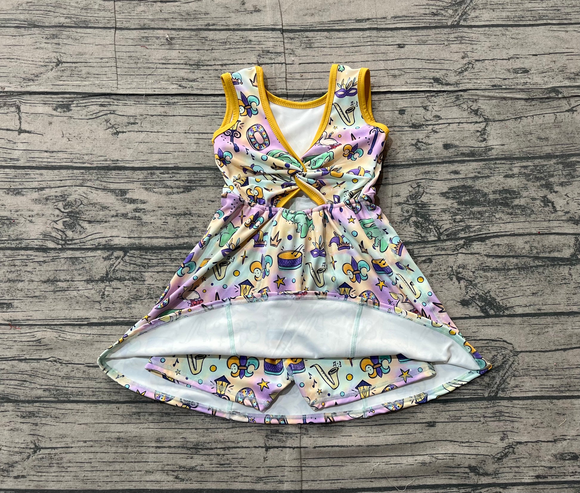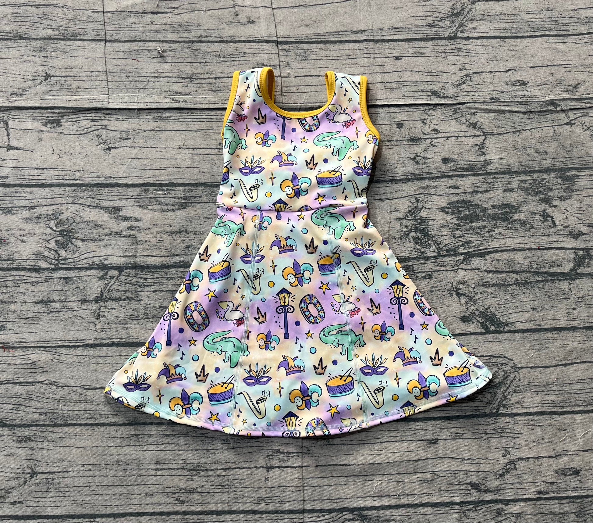 (Pre Order) No moq GSD2949 PRE-ORDER baby girl clothes yoga mardi gras sleeveless dress-2025.11.17